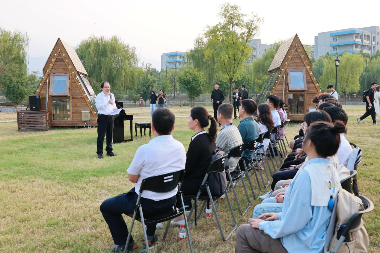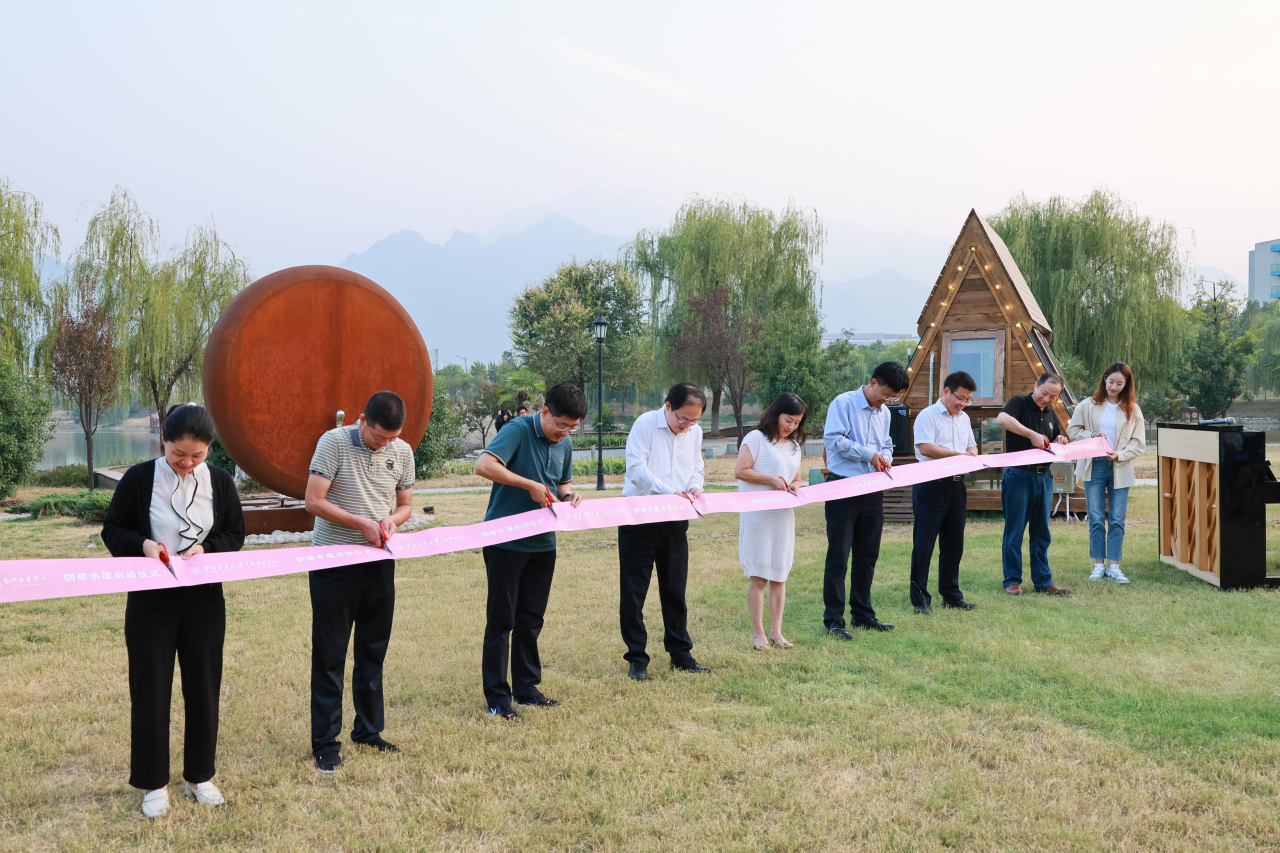 9月23日下午,长安校区钢琴木屋启用仪式在启翔湖畔举行,副校长、学校美育工作委员会主任杨益新发表致辞,他表示,钢琴木屋的启用是学校深化美育改革、提升学生综合素质的重要举措,也是各部门通力配合的结果。作为学校实施“校园美育文化营造行动”的重要组成部分,经过数月的设计、建设,“钢琴校园规划”的6间钢琴木屋在启翔湖畔和通慧园正式启用,力求把美育融入校园生活全方位。