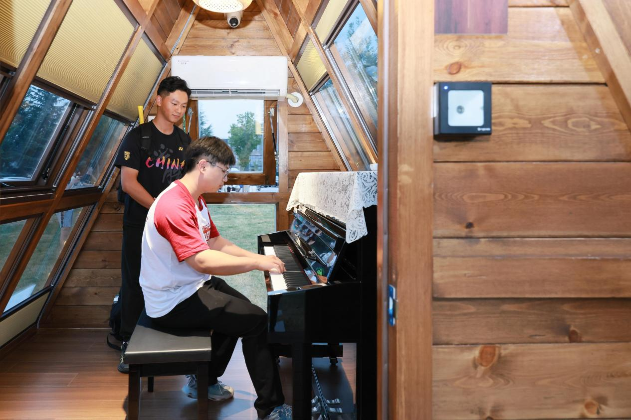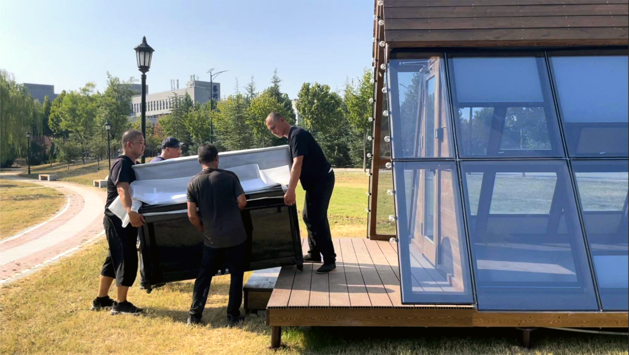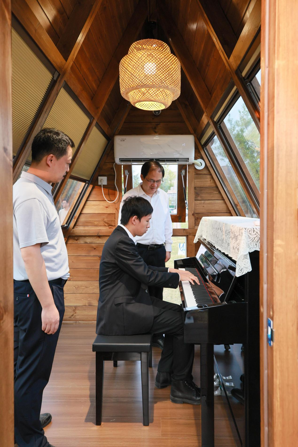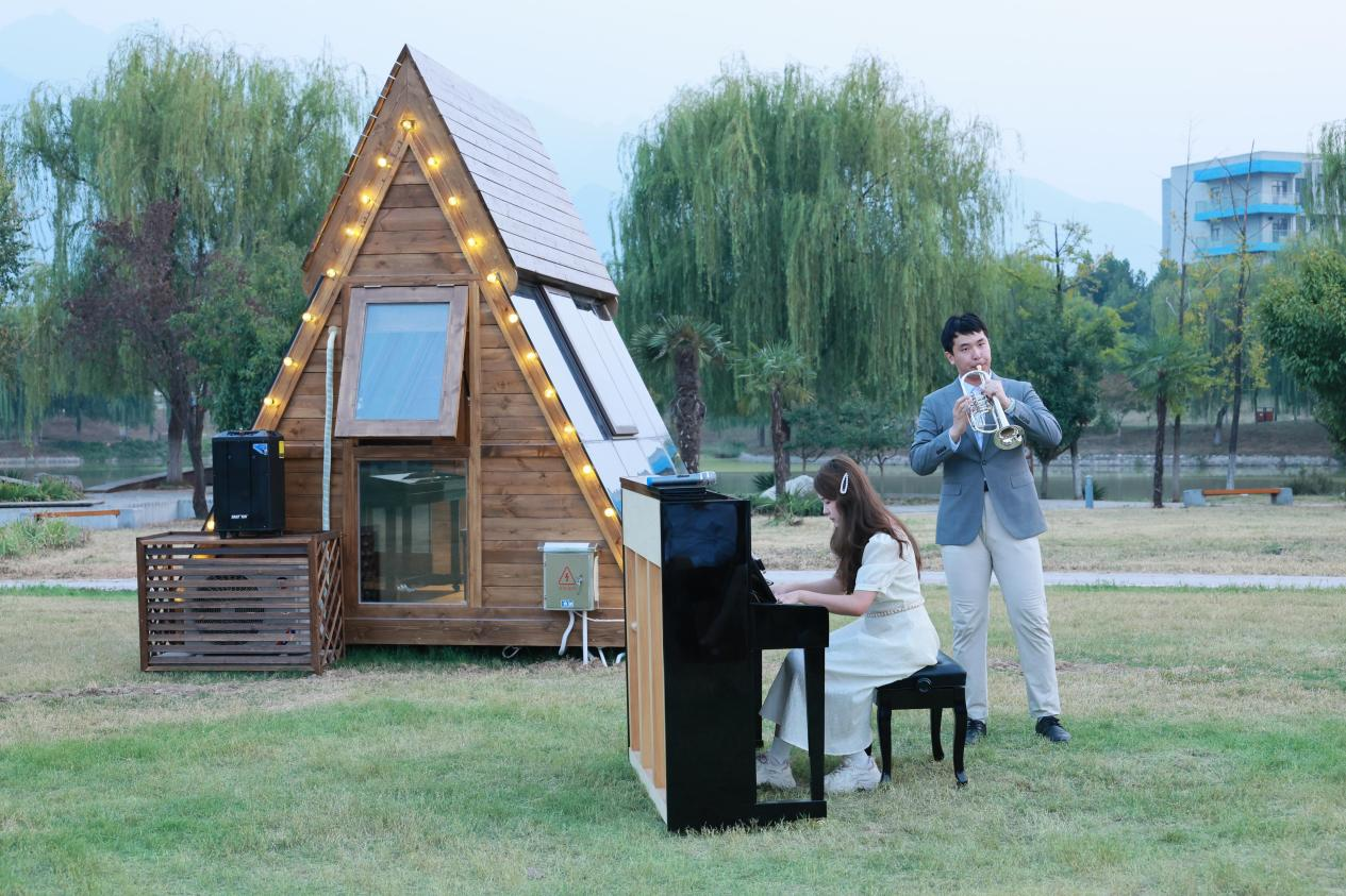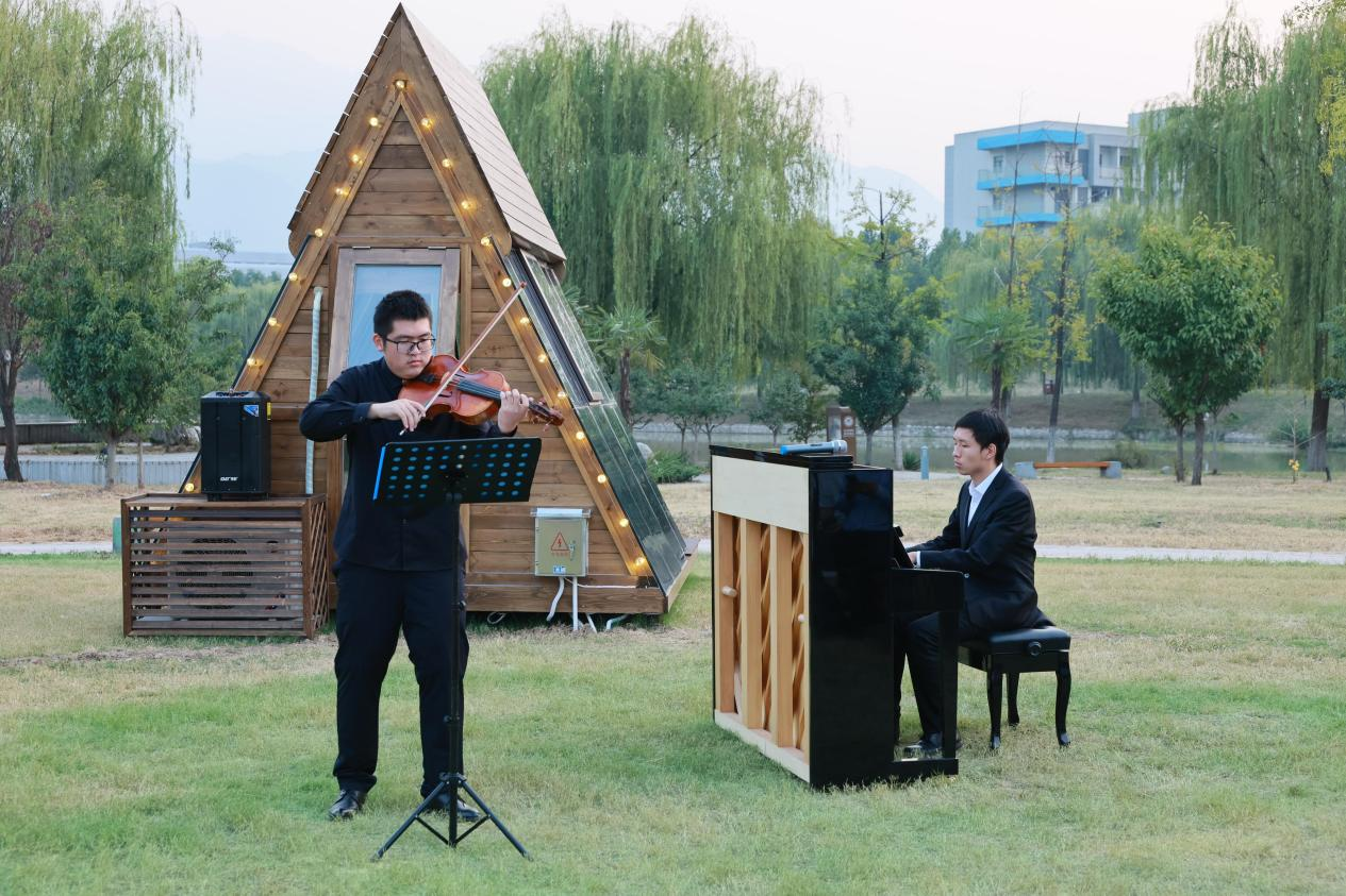秦岭脚下,山水相宜。近日,在BEAT365长安校区启翔湖畔的大草坪上,6座钢琴小木屋正式落成并投入使用。
