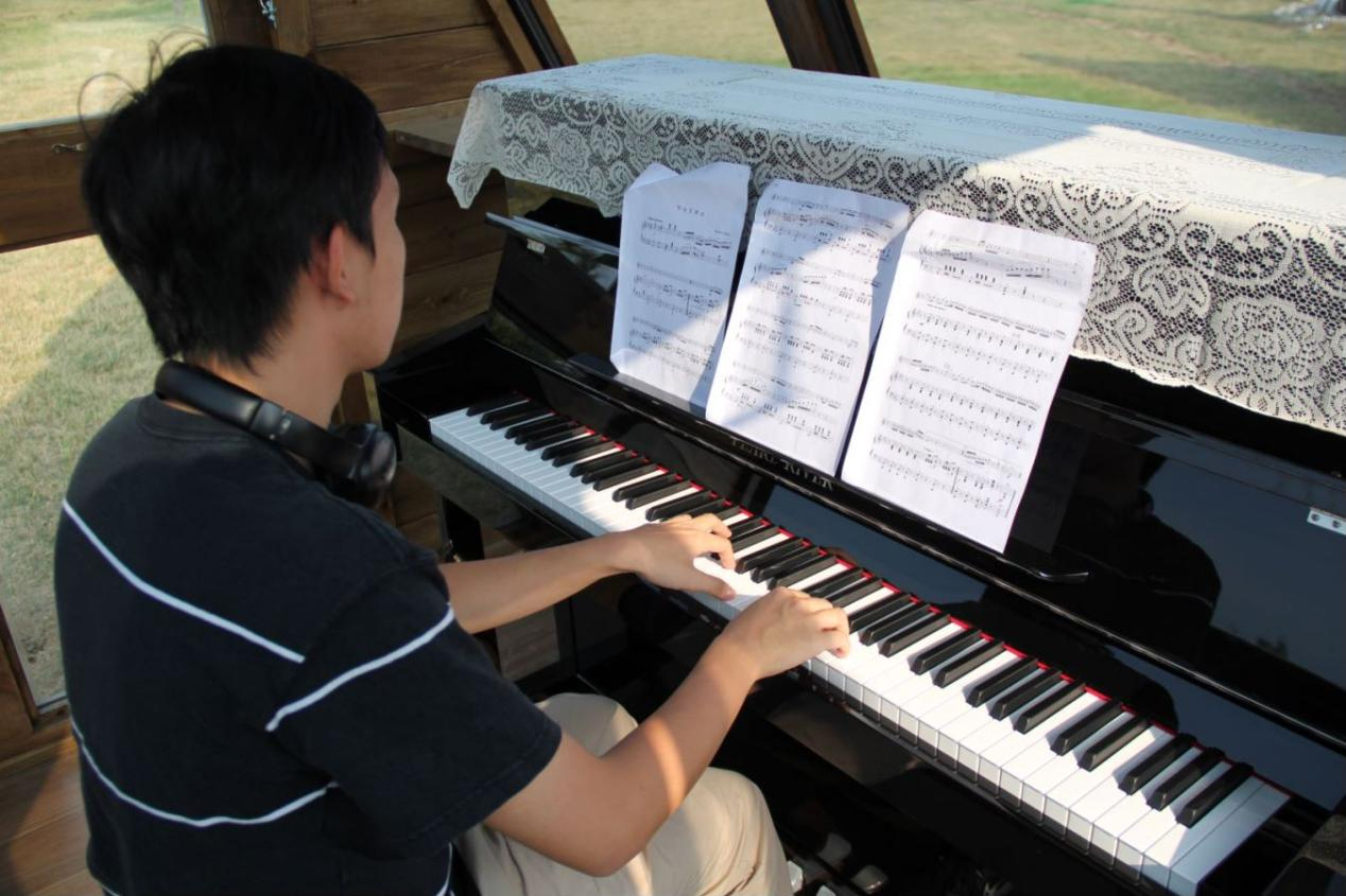 2021级航天学院 桂梵杰:学校湖畔钢琴木屋的“上新”,让我在美景中弹琴的愿望得意实现,身心得到极大的满足。木屋内合适的温度,良好的隔音,配上屋外的美景,让我放松体会音乐美的同时,也感受到了音乐带给我的无穷力量。