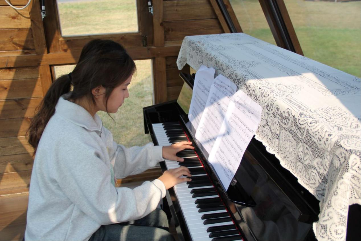 2022级玛丽女王工程学院 郭景毅:设立钢琴木屋,让我感受到了学校对校园文化环境的重视和关怀。作为一名大学生,这样的美妙空间,不仅为我们提供了音乐实践的机会,同时鼓励了同学们之间的交流与合作。在这里,大家可以尽情表达自己的创意,享受音乐的魅力,同时也为校园增添了艺术气息。课余生活更加丰富,让我们找到了更多放松和自我表达的方式。