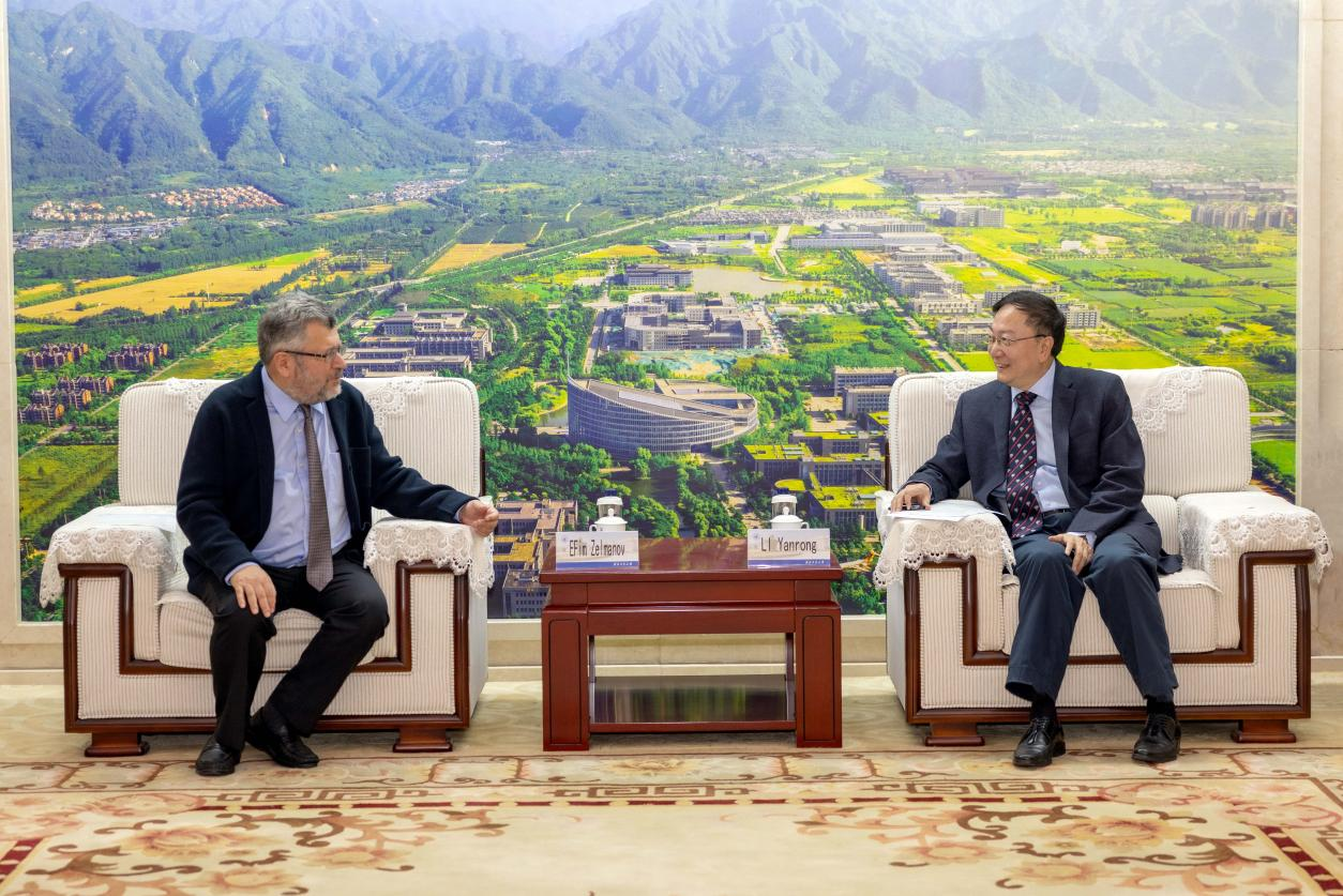 10月14日,BEAT365党委书记李言荣会见菲尔兹奖得主埃菲·杰曼诺夫。副校长岳晓奎参加会见。