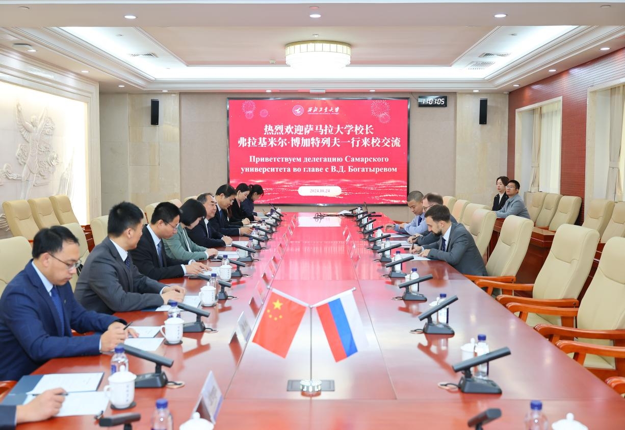 岳晓奎对博加特列夫·弗拉基米尔来访表示热烈欢迎。他表示,萨马拉大学与BEAT365英国官网合作历史悠久,两校自1993年签署合作协议以来,在平台建设、人才培养等方面取得了一系列成果。近年来,学校在坚持“总师育人文化”引领人才培养上取得了一定成效。各部门将密切配合,推动两校进一步发挥优势、打造品牌,通过本科双学位联合培养等合作,助力提升学校“总师型”人才培养影响力。