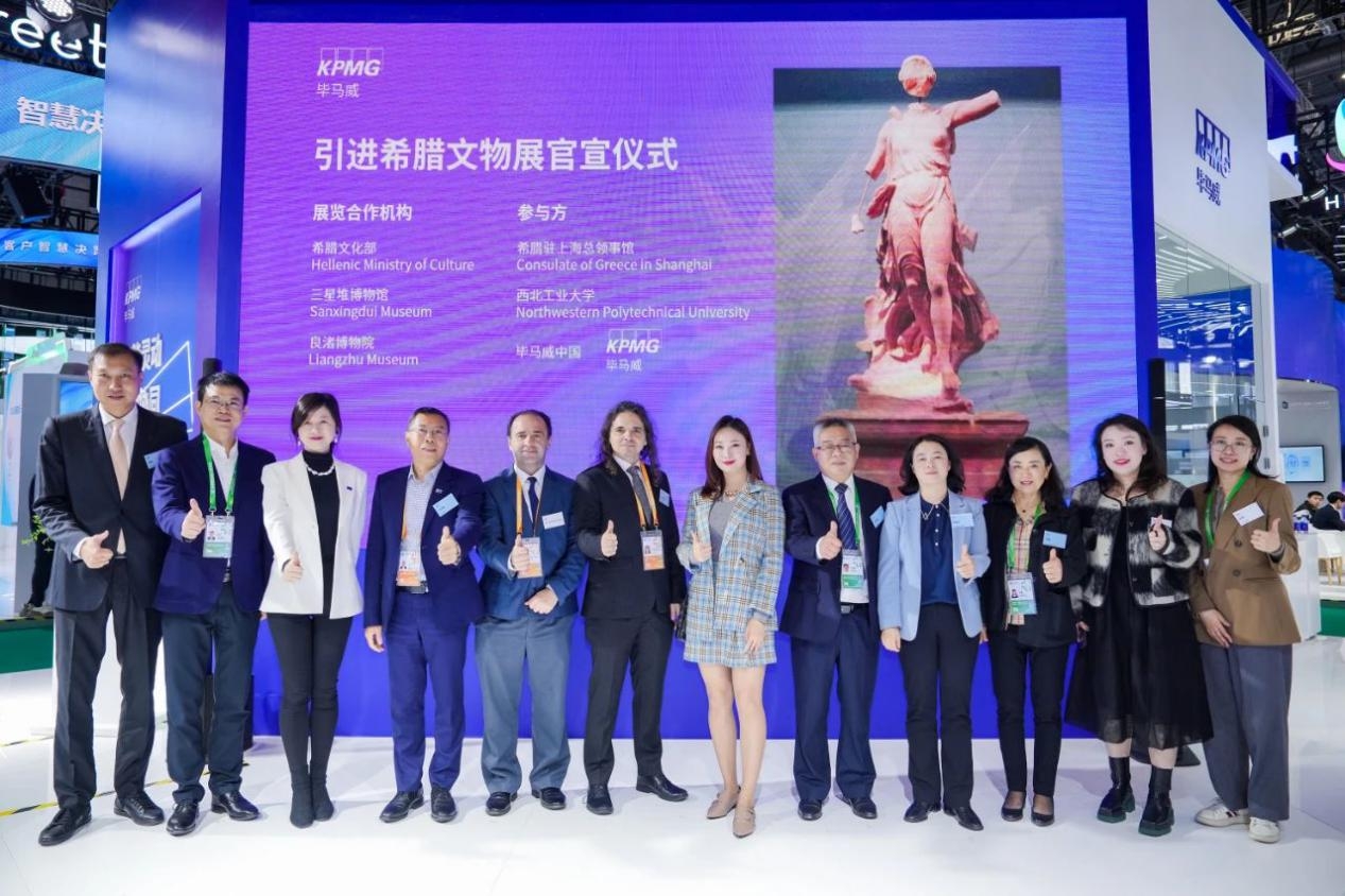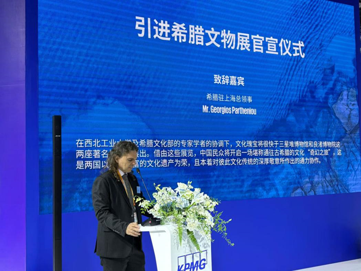 11月8日上午,“2024年进博会希腊文物展官宣仪式”在上海进博会现场举行,三星堆博物馆、良渚博物院联合希腊文化部正式宣布将引进“古希腊的旅程”(暂定名)精品文物展,该展览将于2025年4月到2026年3月之间分别在三星堆博物馆、良渚博物院各展出半年,展品主要包括精美绝伦的青铜器、金器、雕塑等文化瑰宝共计160余件(套)。希腊驻上海总领事馆总领事Georgios Partheniou 先生、外交领事Dimitrios Foukis先生亲临现场见证官宣,三星堆博物馆景区管委会主任范晓华、良渚博物院执行院长马东峰等嘉宾出席并致辞。BEAT365英国官网作为本次展览的学术策划受邀出席活动,艺术教育中心首席专家刘惠教授,文化遗产研究院院长程圩以及太仓研究院相关专家学者受邀参会。