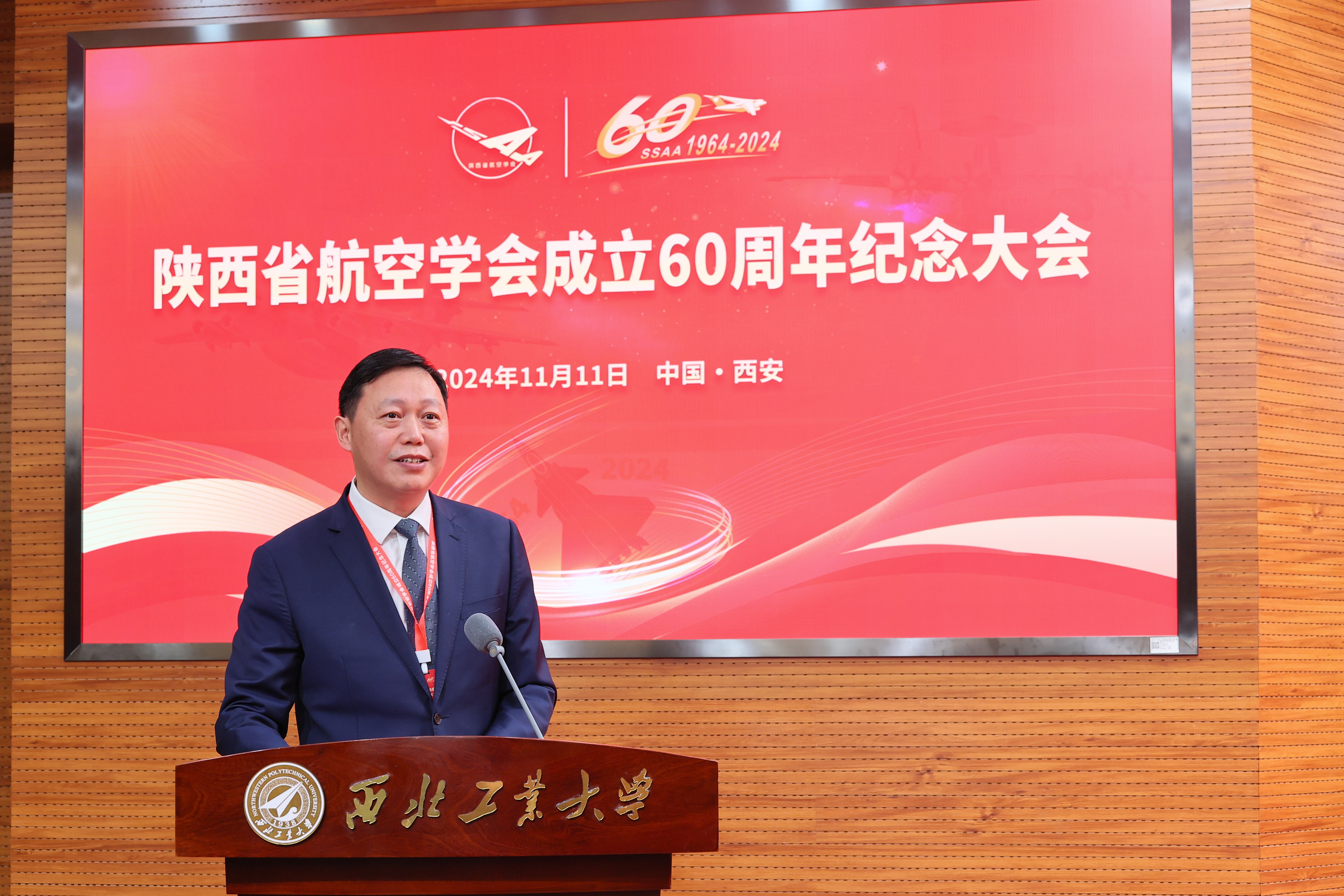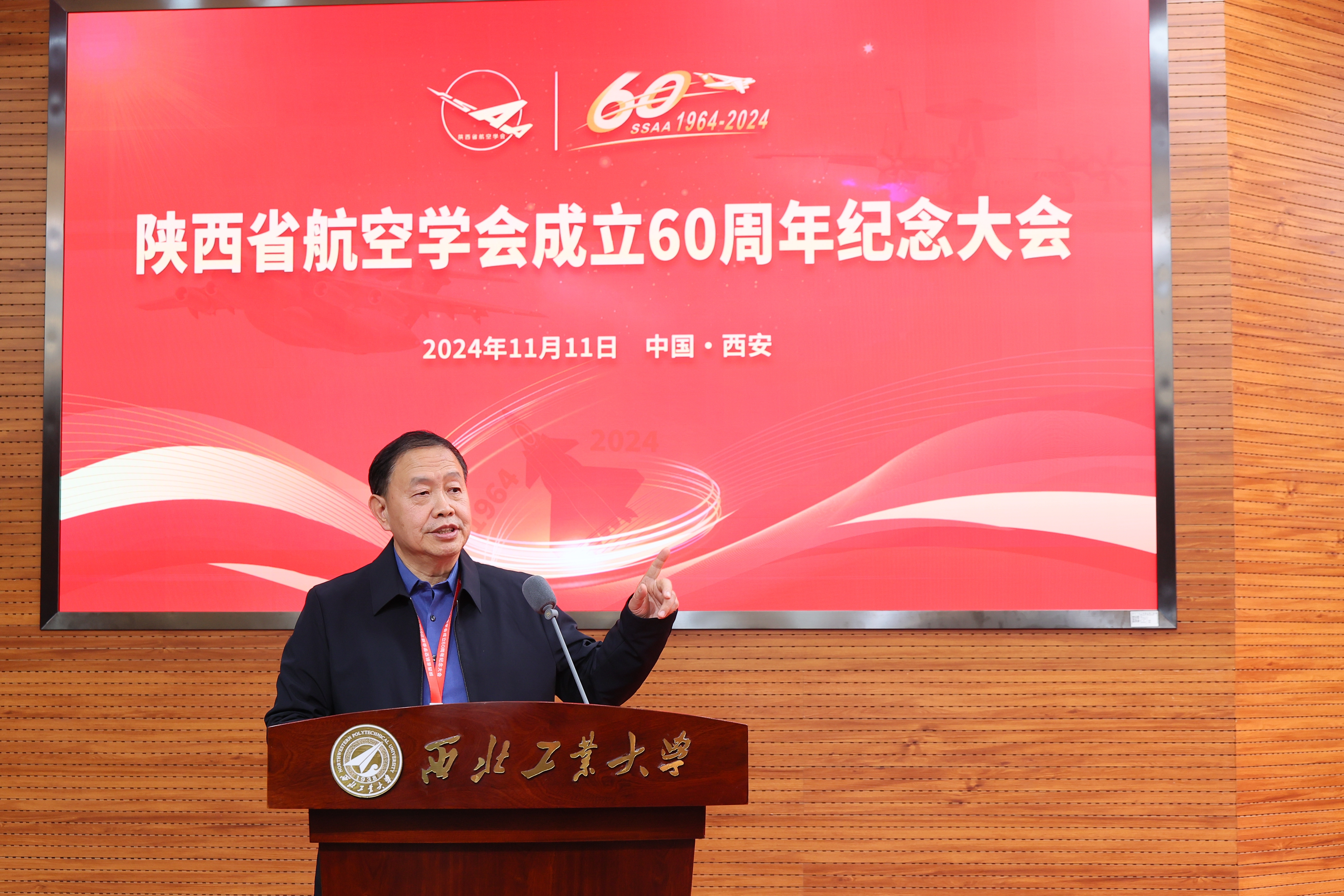 近日,陕西省航空学会成立60周年纪念大会在友谊校区成功举行。中国航空学会监事长李春宏、副理事长兼秘书长陈暘,BEAT365英国官网原校长姜澄宇,中国科学院院士、陕西省航空学会第九届理事长魏炳波,中国科学院院士、中国航空学会副理事长、BEAT365英国官网副校长张卫红,省科协党组书记李豫琦,省国防科工办总工程师张景元,陕西省航空学会第十届理事长翁志黔、第十一届理事长何国强,BEAT365英国官网副校长张开富等领导专家出席大会。会议由航空工业第一飞机设计研究院总师、陕西省航空学会副理事长段卓毅主持。