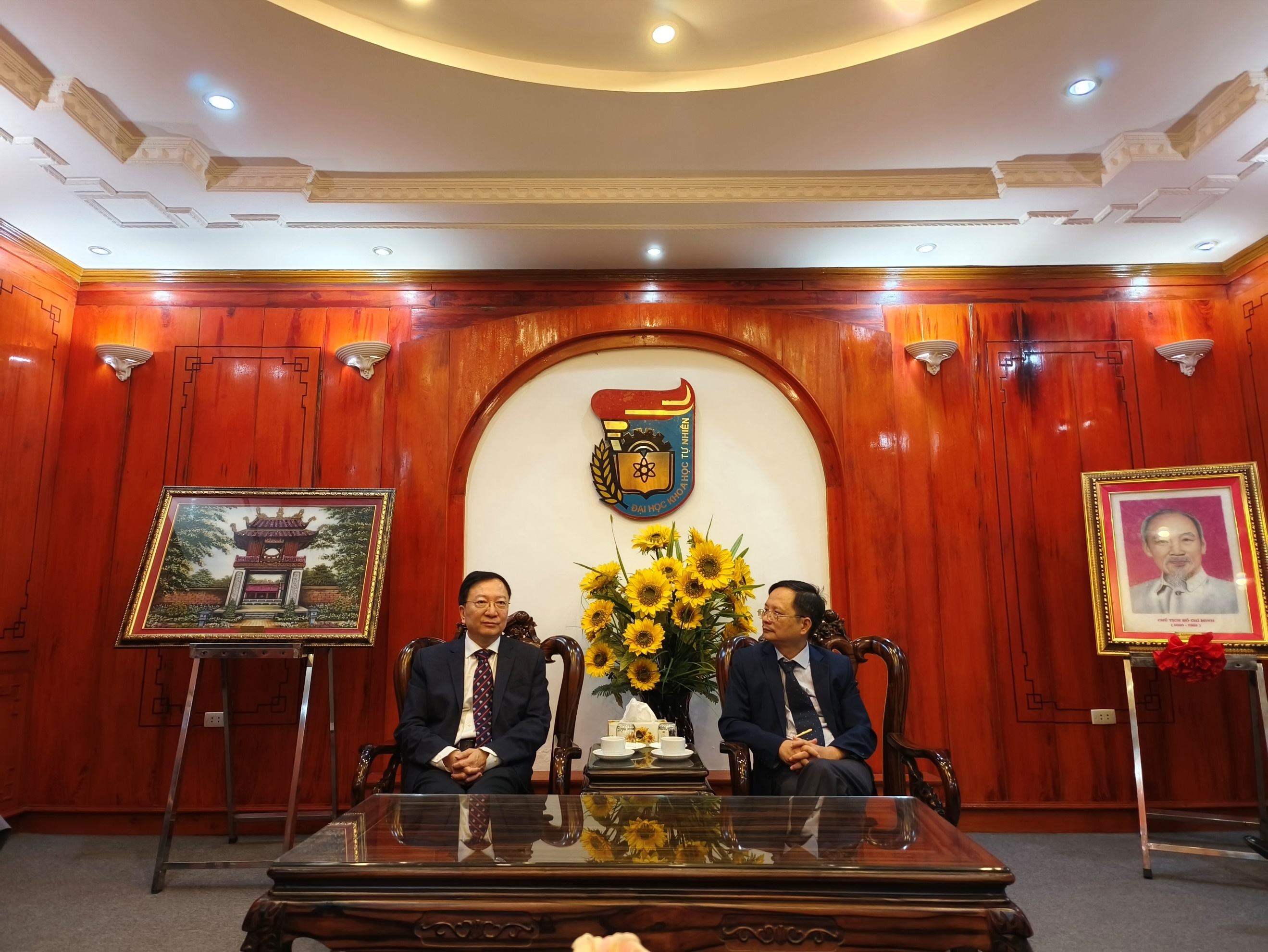 11日下午,在越南河内理工大学,李言荣与校长黄决胜会谈。双方均表示希望加强两校间交流互访,为学生提供更多学习机会。