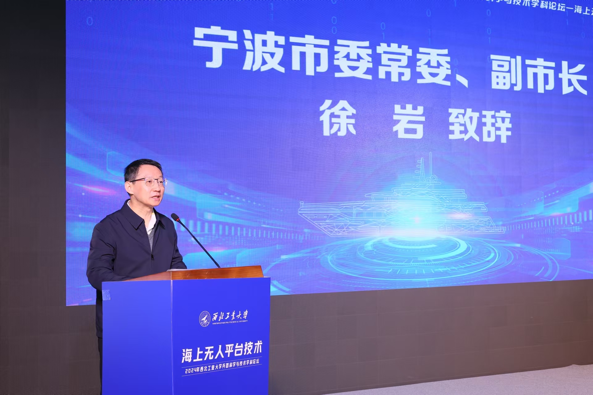 他表示,作为西工大发展的重要组成部分,宁波研究院得到了宁波市委市政府的大力支持,致力于建成服务国家重大需求和共同富裕示范区的战略科技力量。希望通过此次论坛,各位专家分享和交流领域内技术、学术前沿成果,碰撞思想火花,为海洋平台创新发展和相关学科人才培养贡献力量。希望大家瞄准世界科技前沿,面向国家重大需求,共同谋划布局,强化需求牵引下的应用基础研究,凝练重大科学问题,开展重大工程核心技术攻关,为打造新质生产力和新质战斗力做出强力支撑。