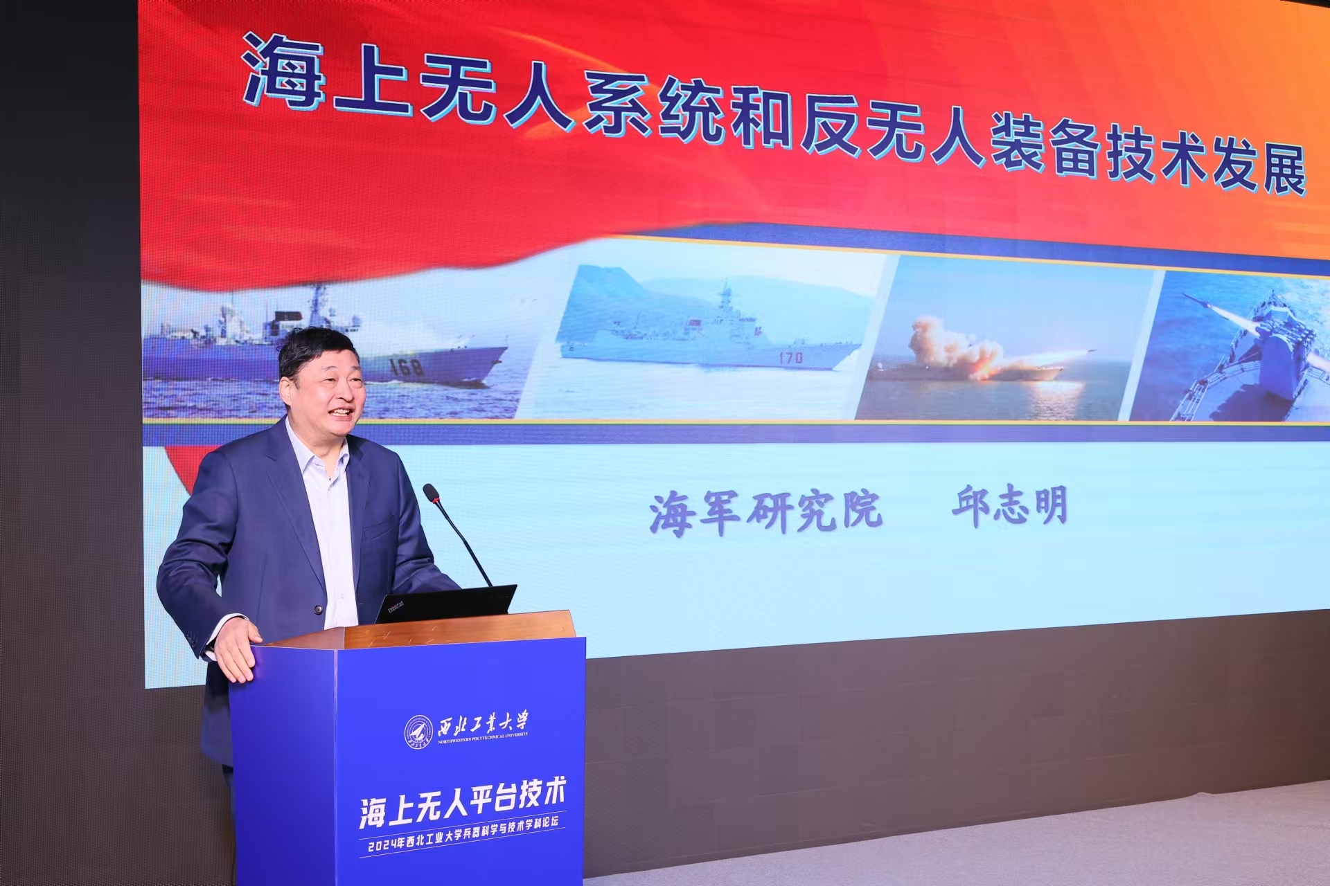 开幕式后,邱志明院士以《海上无人系统和反无人装备技术发展》为题作主旨报告,分析军事智能技术与群智能技术、水下无人航行器、水面无人艇等海上无人系统智能关键技术的发展现状、应用情况及未来发展趋势,希望大家共同为加快海上方向新质战斗力生成贡献更大力量。