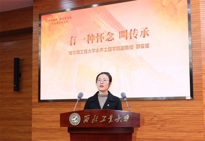 哈工程水声工程学院副教授郭俊媛以《有一种怀念叫传承》为题,深情回忆了自己恩师呕心沥血培养后学的感人点滴。杨士莪院士为后辈遮风挡雨,为学生倾尽所学的故事,令在场观众动容。