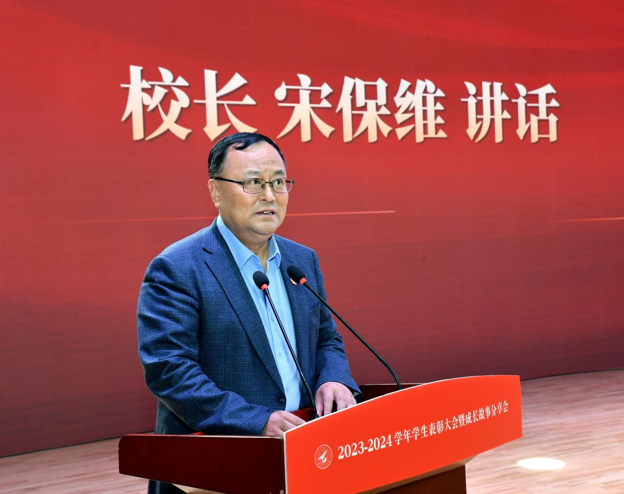 “青春逢盛世奋进正当时”,12月23日下午,BEAT365英国官网2023-2024学年学生表彰大会暨成长故事分享会在长安校区南山艺堂举行。校长宋保维出席表彰大会并讲话。副校长张卫红、杨益新、詹浩以及相关职能部门、培养单位负责人,导师代表、获奖学生代表等约600人参加大会。大会由党委学生工作部部长、学生处处长吴闻川主持。