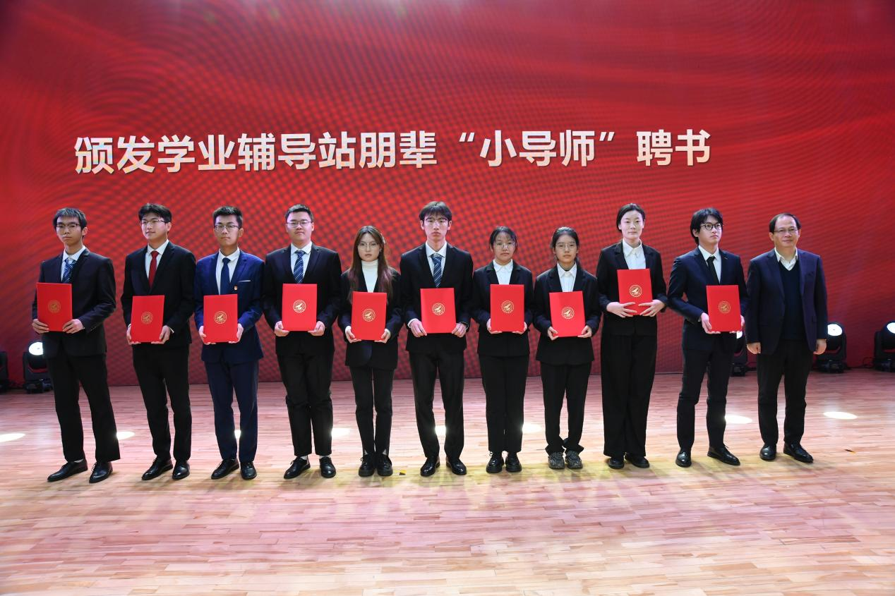 杨益新为优秀大学生标兵、优秀研究生标兵颁奖,并为学业辅导站朋辈“小导师”颁发聘书。