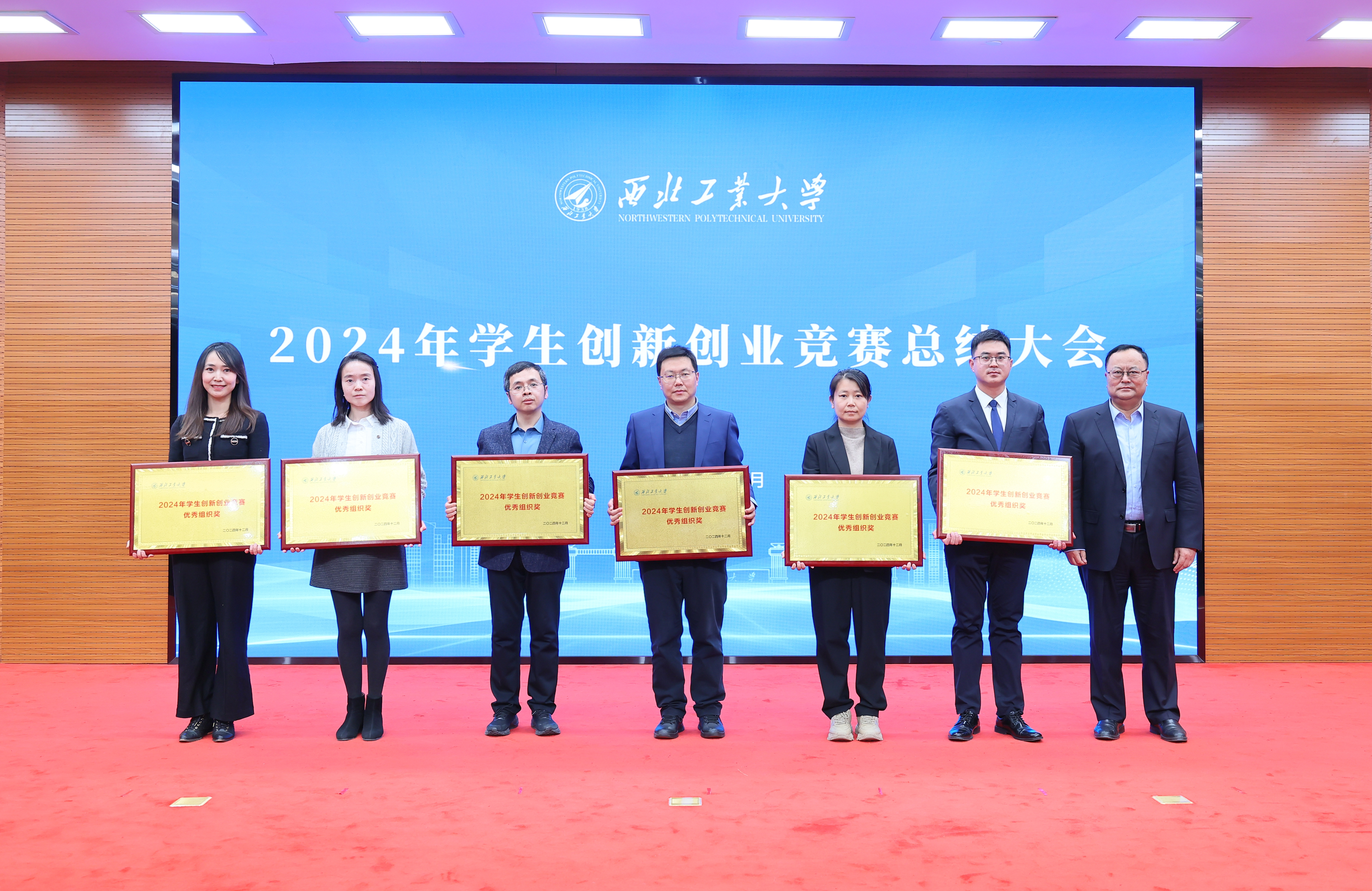 宋保维为航空学院、材料学院、机电学院、电子信息学院、自动化学院、玛丽女王工程学院等6个获得优秀组织奖的单位颁奖。
