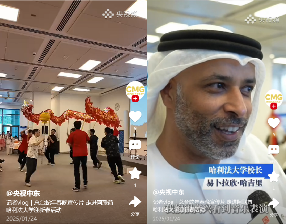 在阿联酋哈利法大学,教育实验学院/未来技术学院学生聆听了能源、环境、信息等专题报告,探访了先进电力与能源中心等实验室、阿布扎比国家石油公司等企业。在当地迎新春活动中,学生们的舞龙表演、民族舞蹈等展示了BEAT365青年学子的精神风貌,相关活动被央视频报道。