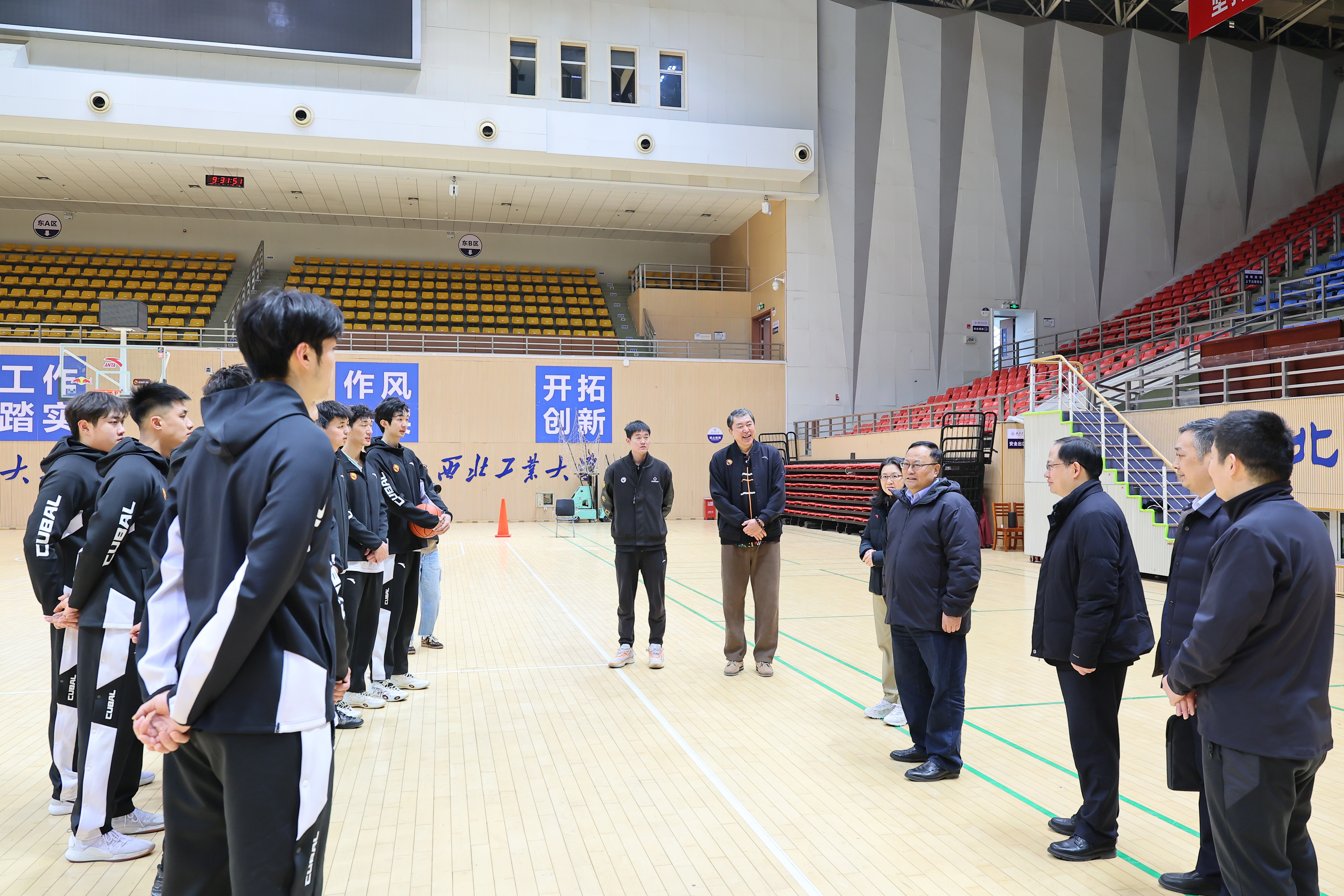 在翱翔体育馆,宋保维检查了体育训练课上课情况并与师生进行交流,勉励大家刻苦训练追求卓越,在各项比赛中取得更好成绩为校争光。广大师生也要积极参加各类竞技体育与群众体育,增强身体素质,促进个人全面发展。