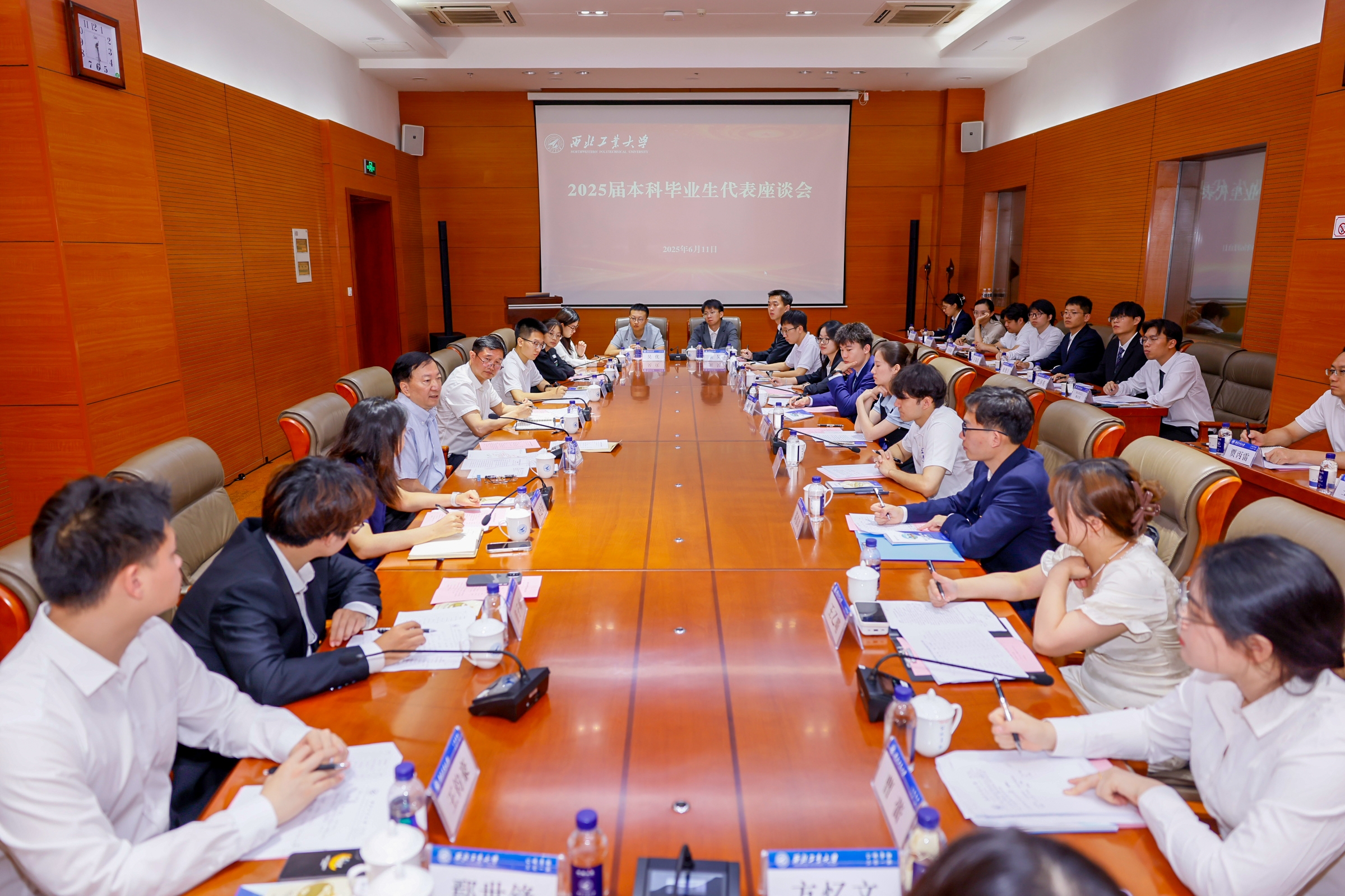 6月11日下午,BEAT3652025届本科毕业生代表座谈会在长安校区召开。党委书记李言荣与26名本科毕业生代表座谈交流。副校长詹浩主持座谈会。