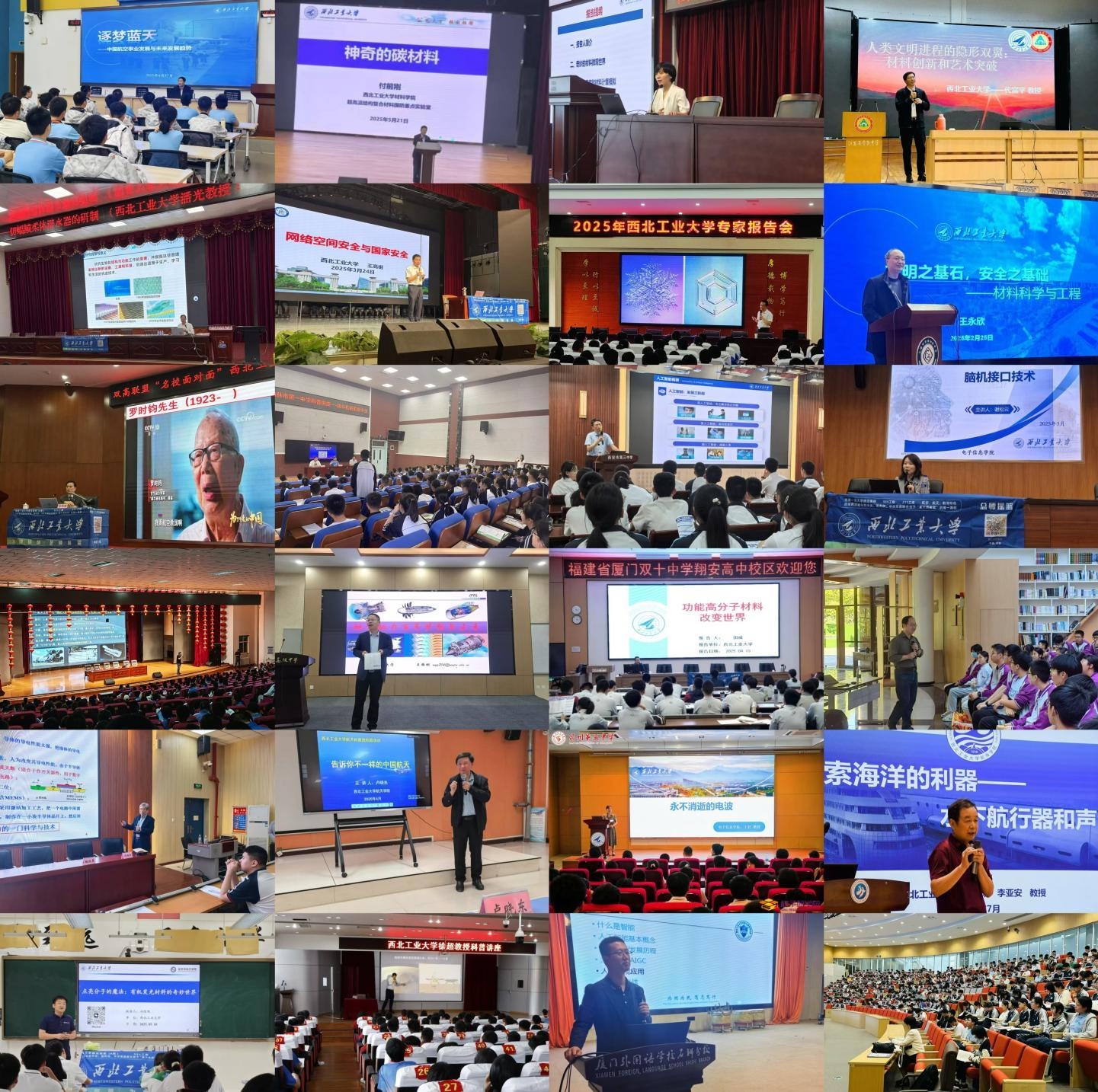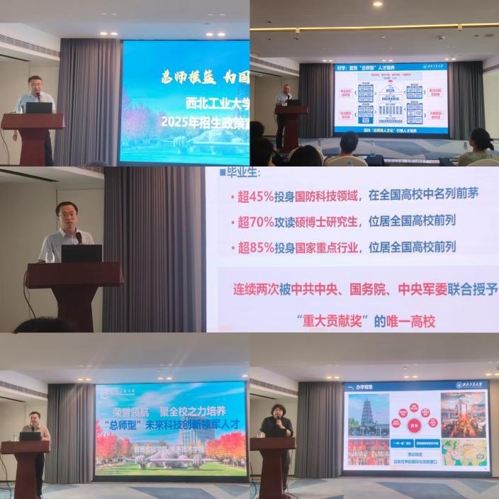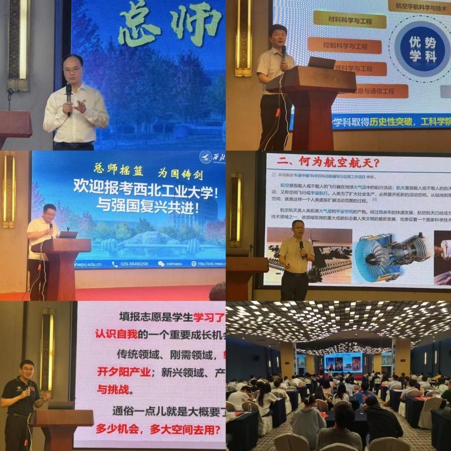 各学院落实“全年、全员、全力、全方位”的招生宣传理念,常态化走进中学,开展“三航”特色为主题的高水平科普教育工作、特色化招生宣传及科学教育共建工作。邀请院士、校友、知名教授等专家学者、行业大咖,走进全国500余所重点中学,在航空、航天、航海、材料科学、物理基础、人工智能、生态环境、人文历史等广受中学师生关注的学科领域开展科普讲座220余场。以航模表演、机器人表演为特色的“科技表演进中学”活动点燃了广大中学生心中的科技梦想,使大家更好地了解西工大“三航”学科特色。