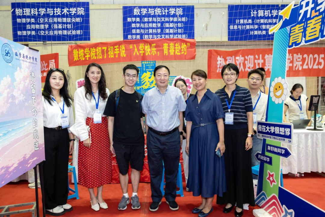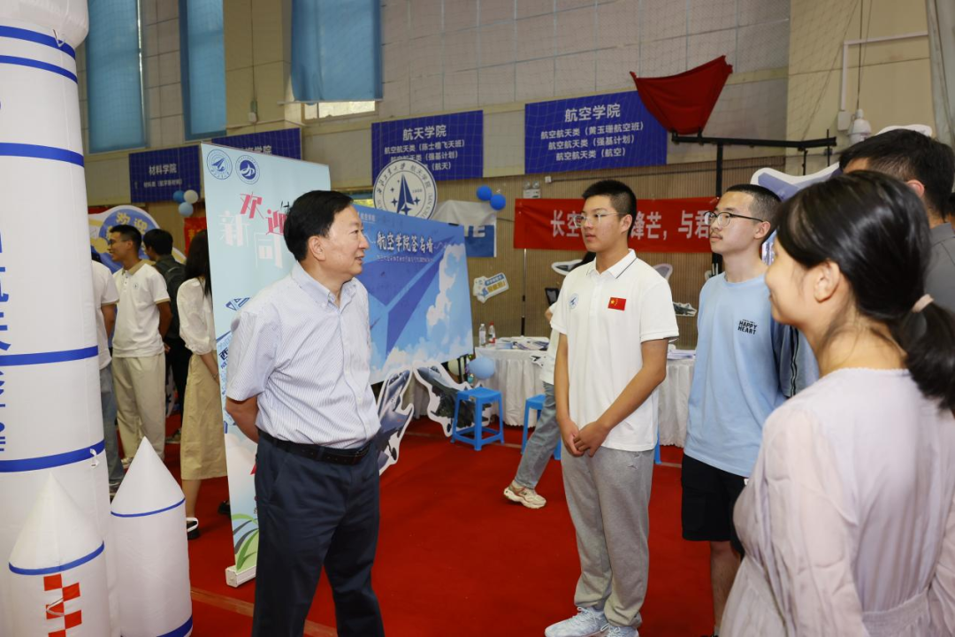 李言荣对各单位高效统筹迎新筹备工作表示肯定,对参与迎新志愿服务的师生表示感谢。他逐一走访各学院,详细询问当前新生报到进度、注册情况、生源分布等,并亲切地与新生们握手交谈。来自福建的廖瑞祺同学即将开启在航空学院黄玉珊航空班的学习生涯,他说:“一直以来我都被西工大‘为国铸剑’的家国情怀所吸引,高一的时候便坚定了要报考的决心,今天终于站在了梦想中的校园,我会慢慢去体会学校的魅力。”