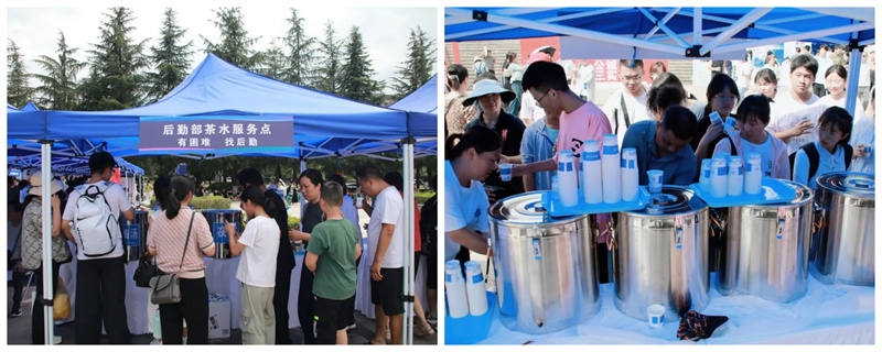 在迎新服务接待点,各位同学和家长可领取免费茶水、酸梅汤等,饮食服务中心在云天苑餐厅设立家长休息区,并于午餐时段实行不间断供应,合理延长供餐时间,为新生及家长带来便捷、温馨的入校服务体验。