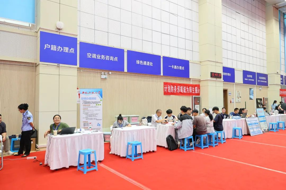 在翱翔体育馆副馆内,学院迎新报道点整齐排开,各学院院长、书记、辅导员老师们也都早早等候着同学们的到来,新生们有序完成身份核验,校园卡及报到材料领取等多个环节。