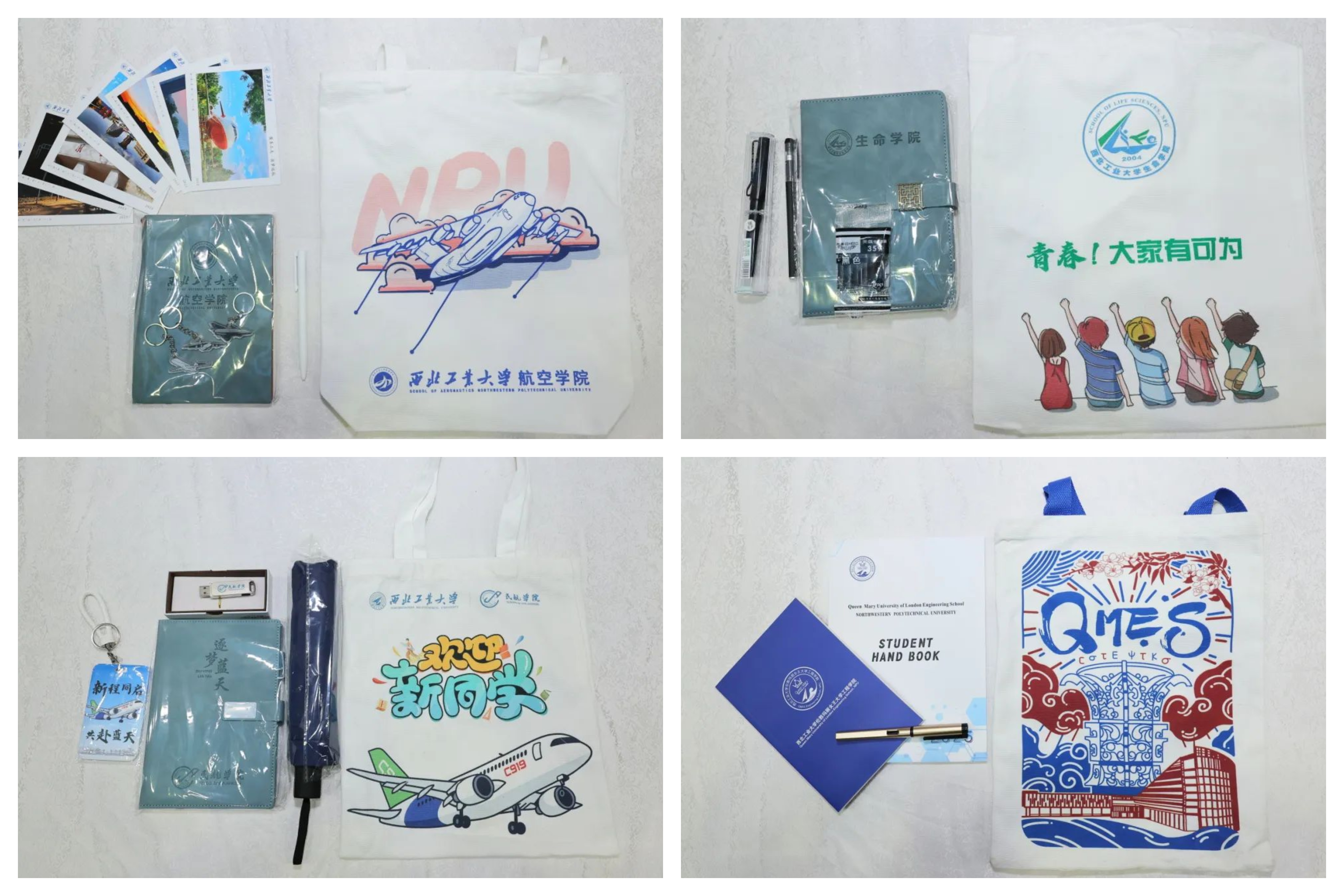 各学院为新生精心打造专属启航礼物——帆布包、水杯、明星片、文化衫等,既融入学校建筑元素,又暗藏各院系专属彩蛋,献上情意满满的见面礼。