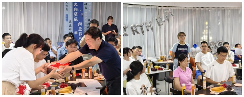 23日上午,副校长詹浩还前往学生宿舍看望新生,与新生及家长亲切交流,并给当天过生日的同学送上礼物和祝福。