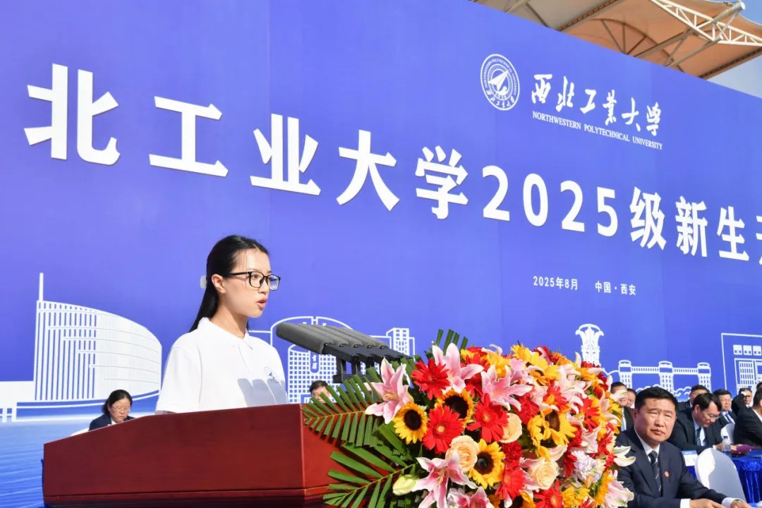 航空学院黄玉珊航空班2025级本科生廖瑞祺代表所有新生向帮助大家顺利入学的师长、学长们表示了衷心的感谢。从东南沿海的鹭岛江畔,到西北古都的渭水之滨,他动情讲述了自己心怀渴望,逐梦西工大的故事。高中时他便被这所“总师摇篮,为国铸剑”,“硬核”但不失“温度”的大学深深吸引,“三航报国”的种子在他心里悄然生根发芽,于是将西工大作为自己最坚定的选择。如今成功圆梦,他表示将以真才实学筑牢根基,以创新精神搏击前沿,以实干姿态投身实践,不负前辈之志,不负时代所托,以卓越追求和扎实作为,真正成为新征程中奔涌的后浪与挺立的脊梁!