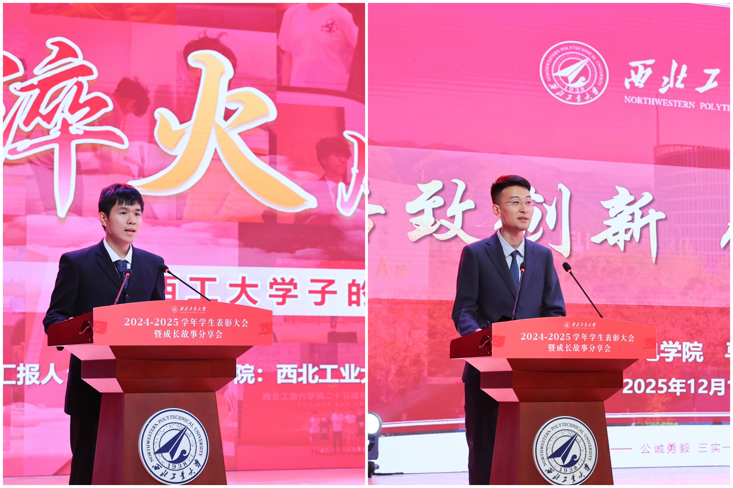 优秀大学生标兵代表、玛丽女王工程学院本科生邓益凡同学将自己的成长比作一块毫微之材,讲述在工大“总师育人文化”的滋养下,通过“内在修炼”“传承致远”“外在拓展”,锚定坐标奋发向上的成长故事。优秀研究生标兵、机电学院博士生马腾,讲述了自己聚焦空天共形电子制造领域研究,“格致创新、砺剑星海”,实现个人从“跟跑”到“并跑”再到“领跑”的奋斗之路,他坚信:“科研从无捷径,唯有以‘钉钉子’精神深耕不辍,方能不断突破。”