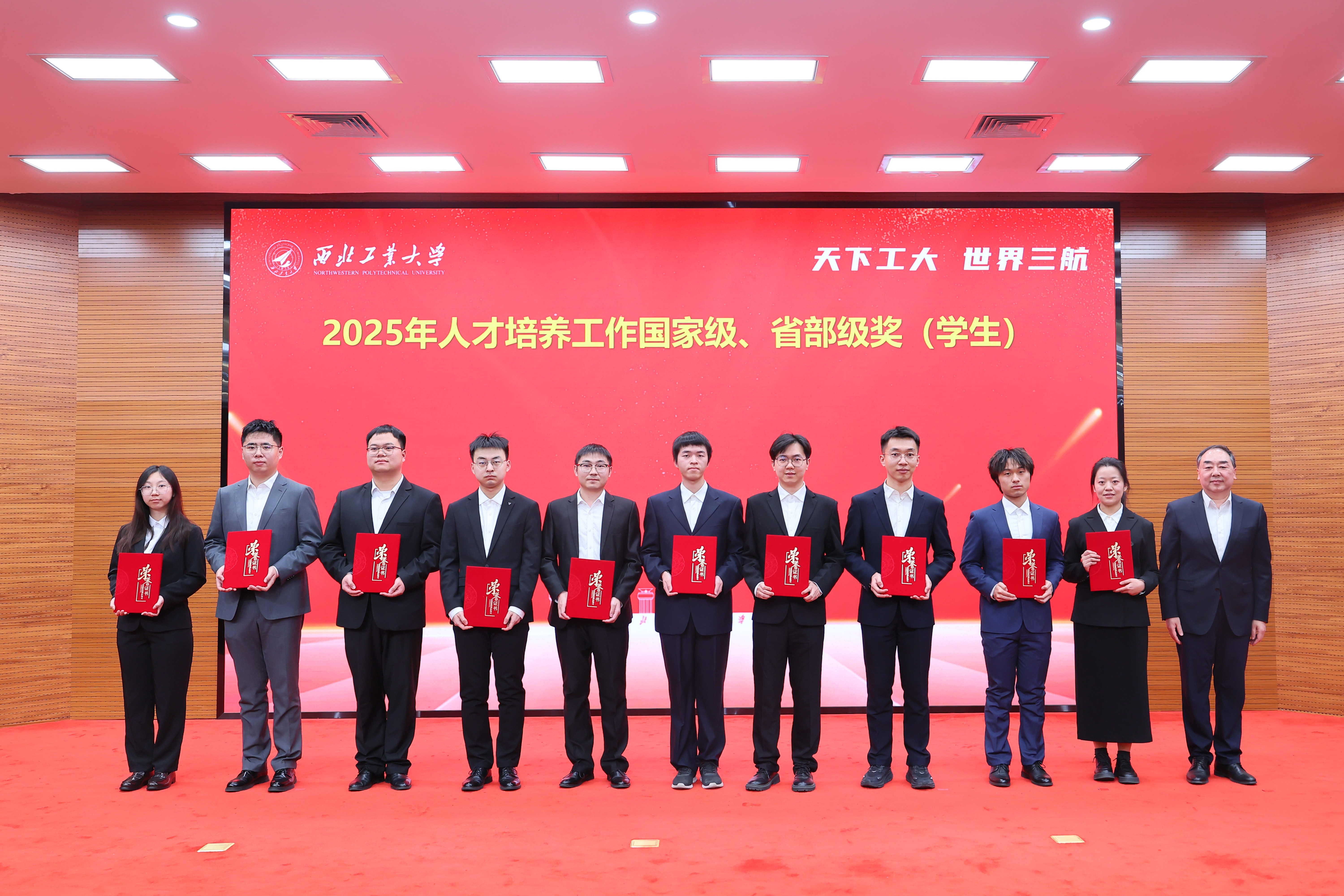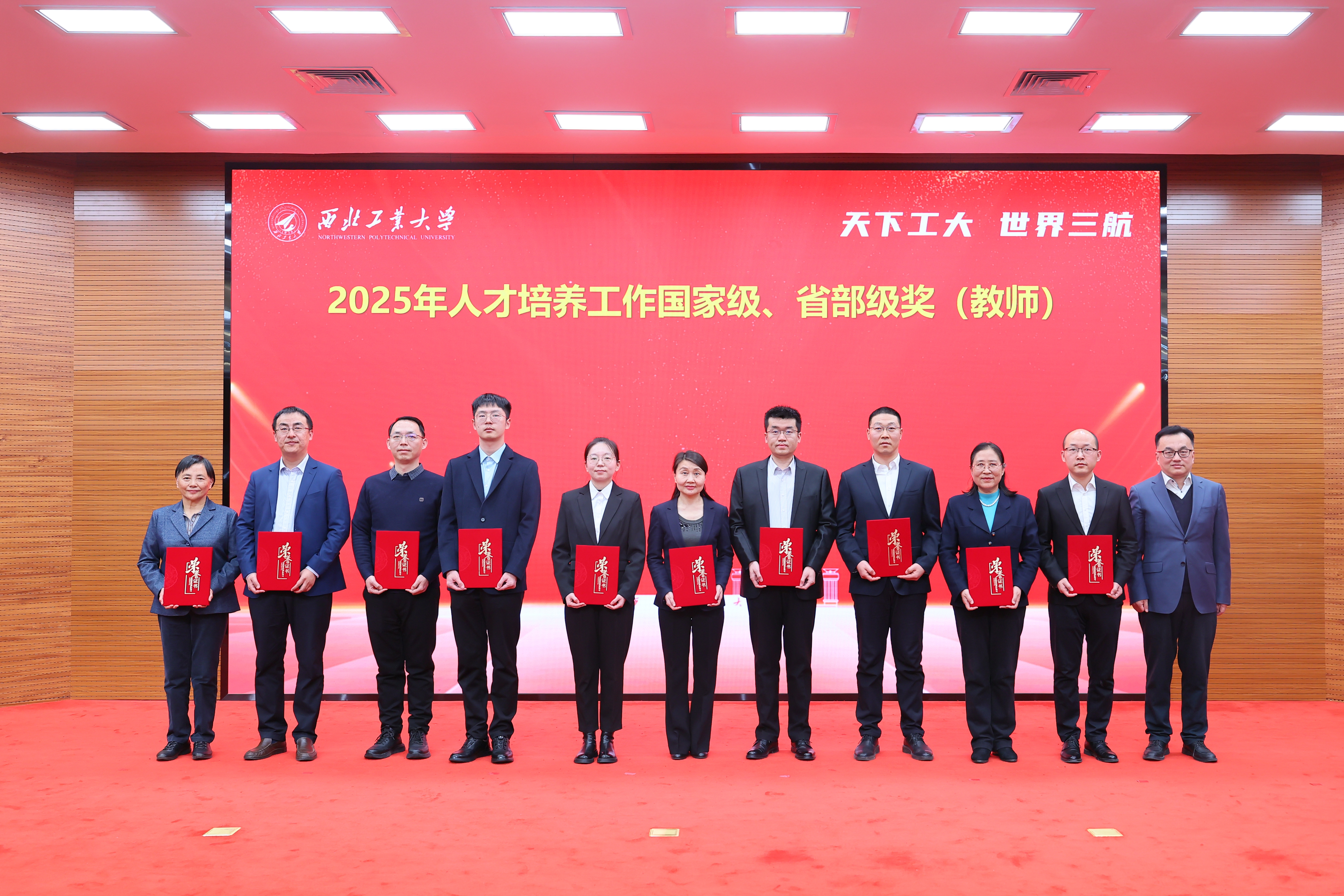 李言荣、宋保维、吕卫东、岳晓奎、王伶为国家级、省部级和校级奖项获奖师生代表颁奖。