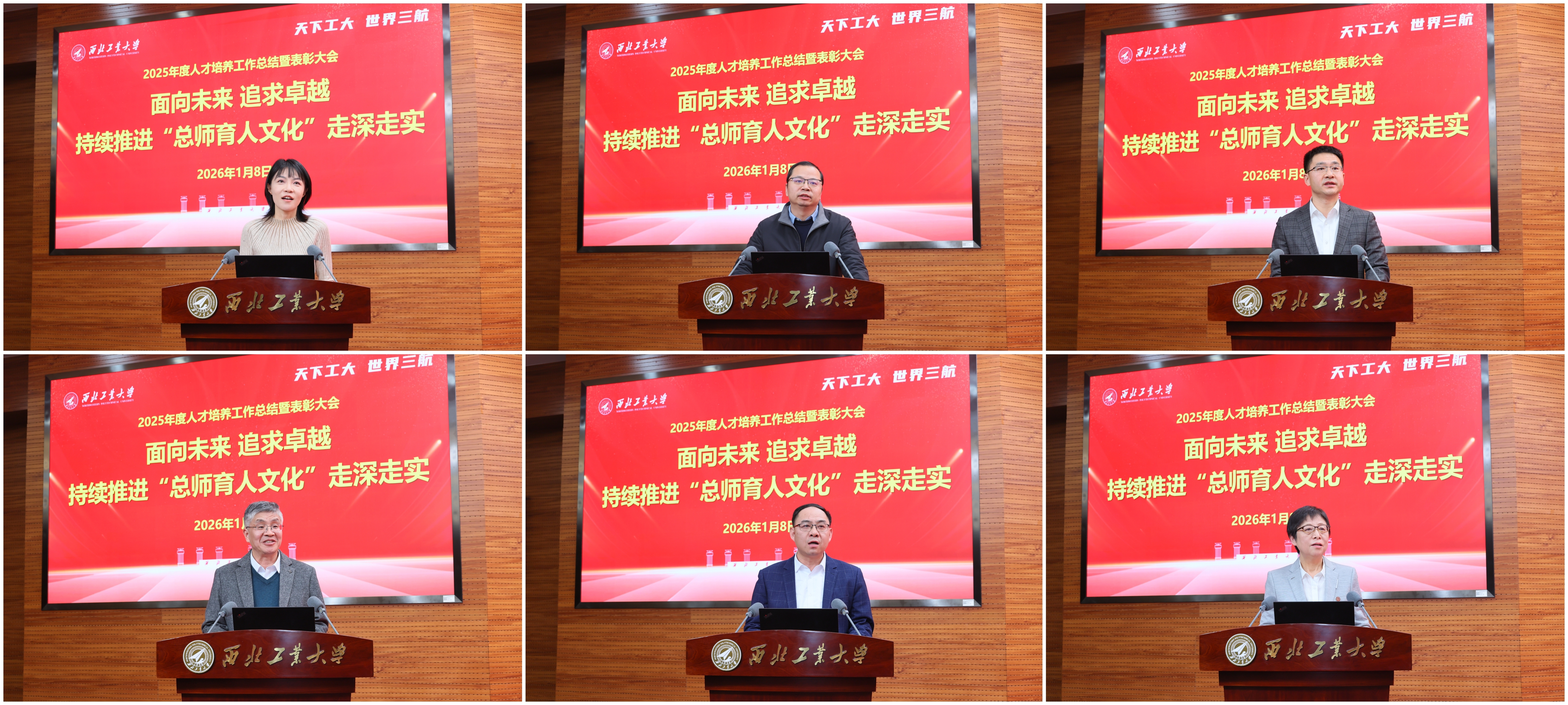 教务部部长王海鹏、研究生院院长朱继宏、党委学生工作部部长于辉、团委书记佘磊磊、国际合作处处长孔杰作年度人才培养工作总结汇报。航天学院党委书记黄越、机电学院党委书记张映峰、电子信息学院党委书记侯俊、数学与统计学院院长聂玉峰、国家卓越工程师学院常务副院长蒋建军作工作经验交流汇报。教师代表赵美英教授作交流发言。