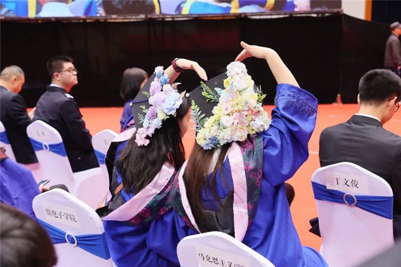 随后,全体毕业生起立佩戴校友徽章。校领导、院士、杰出校友为校友联络员代表佩戴校友徽章并颁发聘书。机电学院硕士毕业研究生陈轲同学领誓,带领全体毕业生郑重宣誓:秉承“公诚勇毅”校训,弘扬“三实一新”校风,以实现中华民族伟大复兴为己任,不忘初心,笃定前行目标,牢记使命,勇做时代新人!铮铮誓言回荡在翱翔体育馆上空,也激荡在学子们心中。