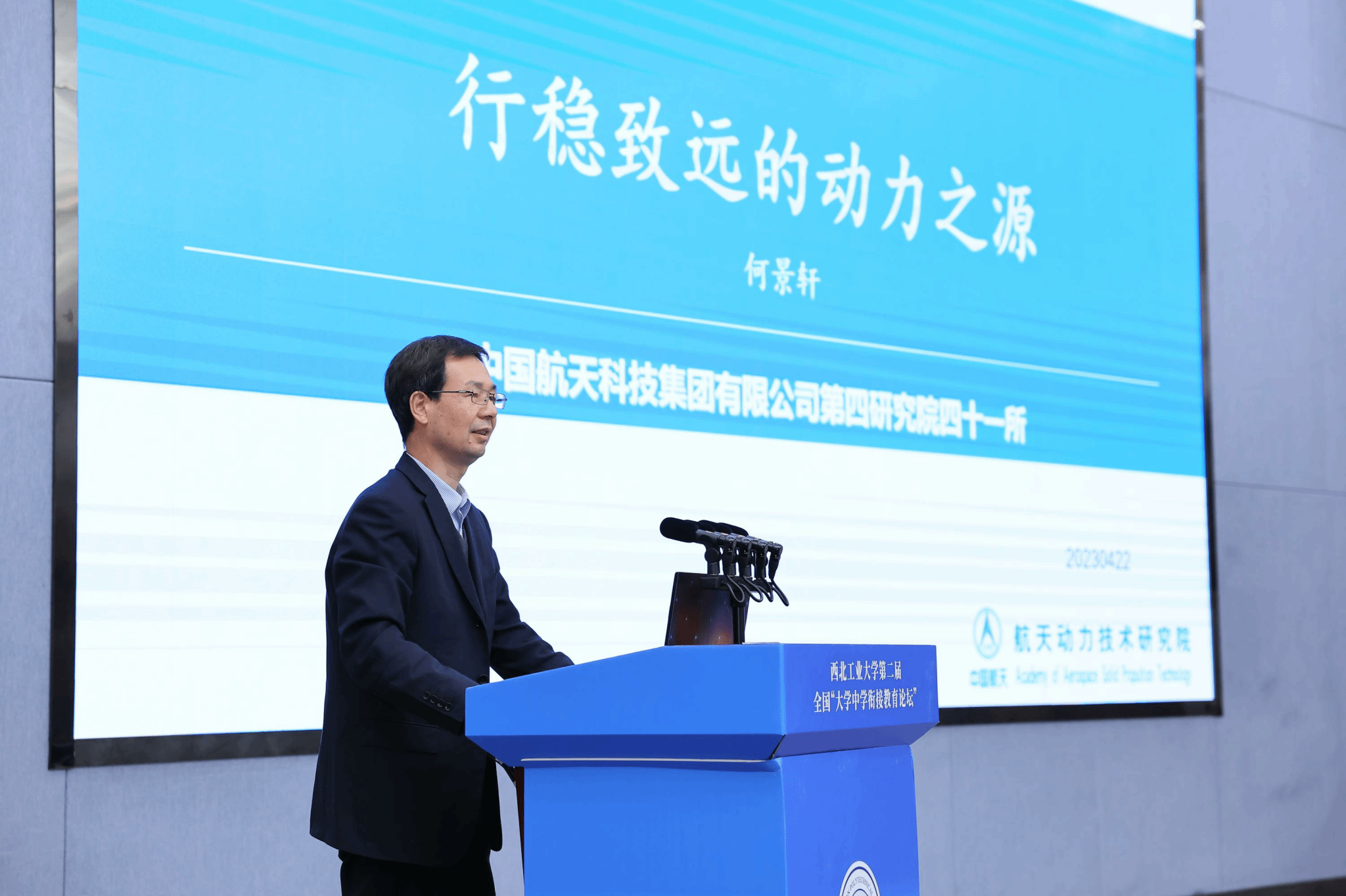 何景轩总师以《行稳致远的动力之源》为题向参会嘉宾介绍了个人成长经历以及我国从航天大国向航天强国跨越的过程中,固体动力领域行稳致远的两个主要动力之源——一是固体动力技术的持续创新发展,二是母校西工大对相关学科人才的体系化、高层次培养。他指出,西工大有实力能源源不断地培养造就大批优秀人才,为我国的航天事业作出更大的贡献。