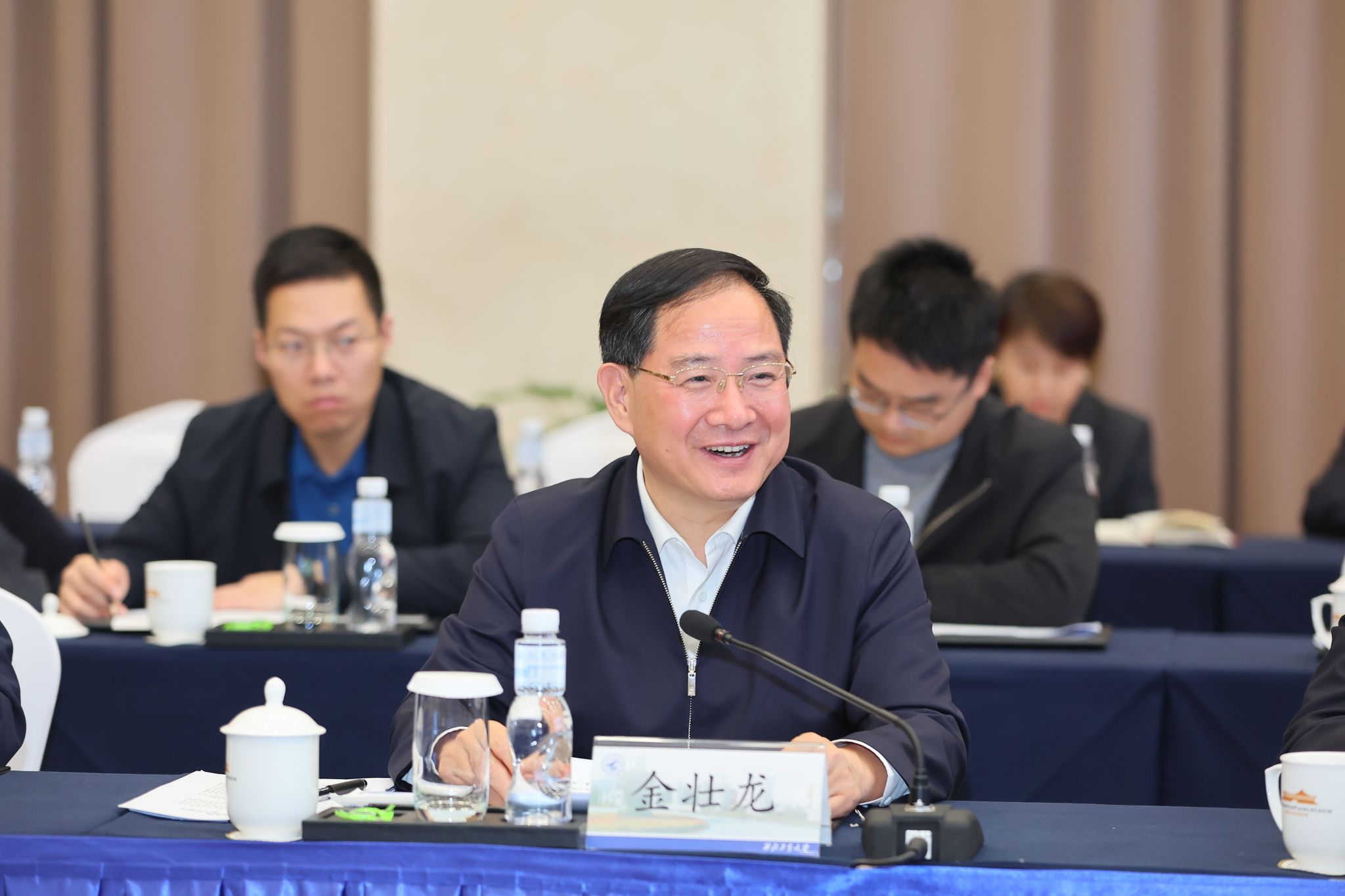 金壮龙对学校扎根西部,在党的建设、人才培养、科技创新、合作办学等方面取得的成绩给予充分肯定,强调要坚持以习近平新时代中国特色社会主义思想为指导,深入贯彻习近平总书记关于高等教育、科技创新、人才强国的重要论述,学深悟透习近平总书记关于新型工业化的重要指示、重要论述,全面贯彻党的教育方针,把牢社会主义办学方向,落实立德树人根本任务,坚持“四个面向”,为党育人、为国育才,加快建设中国特色世界一流大学。