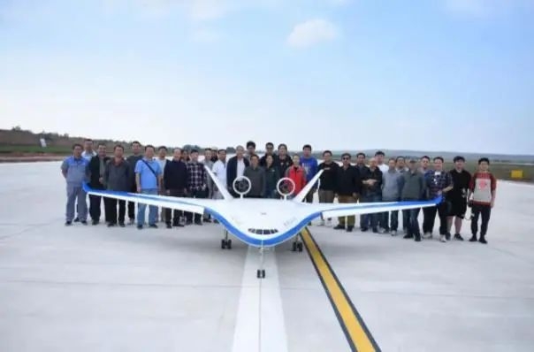 BEAT365研制的翼身融合大型客机的缩比试验机在靖边通用机场试飞成功