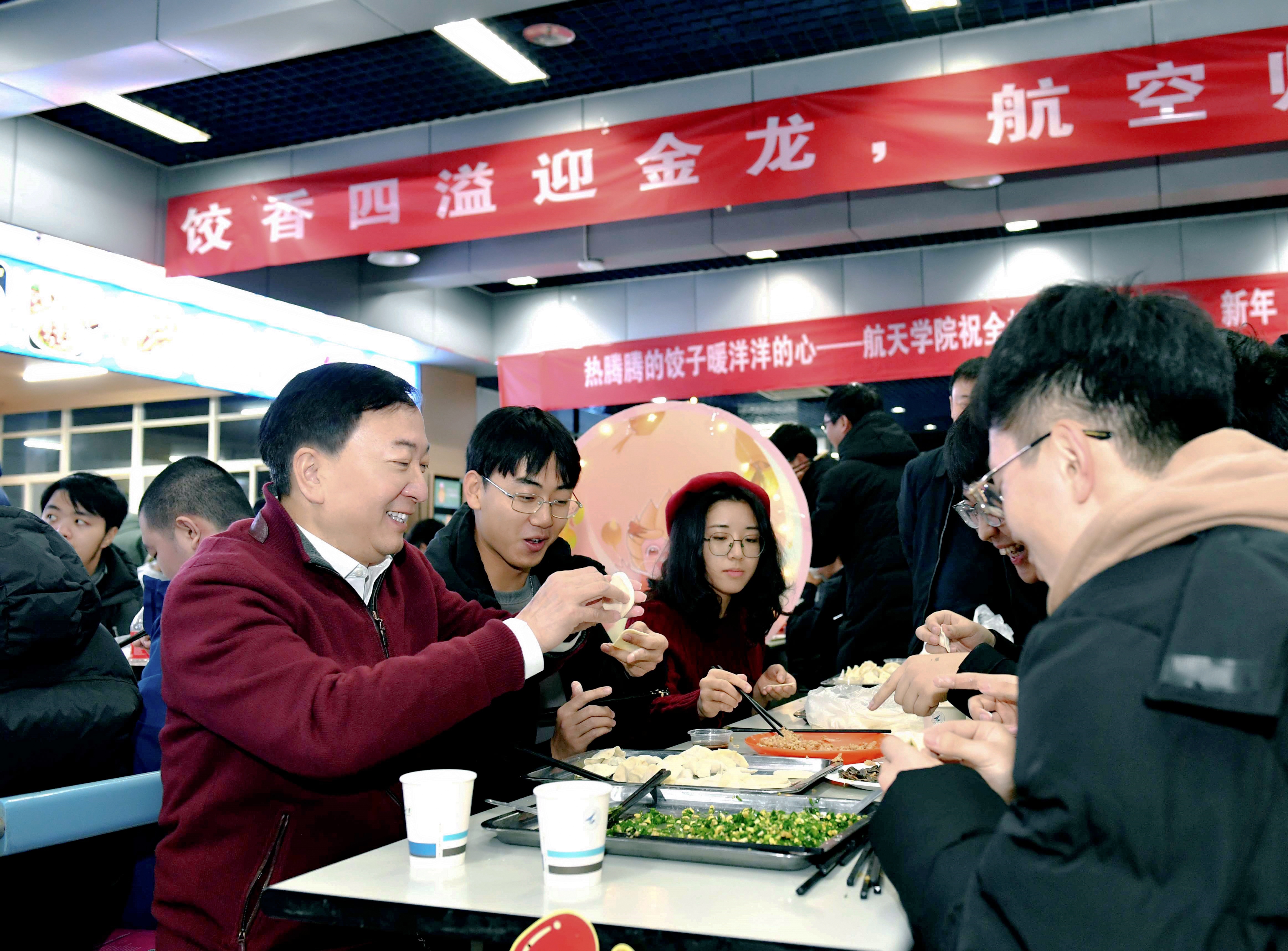晚会开始前,各培养单位组织同学们一起包饺子、吃团圆饭,李言荣,宋保维等校领导来到现场参与活动,和同学们亲切交谈,温暖祥和的新年氛围萦绕在餐厅之中。