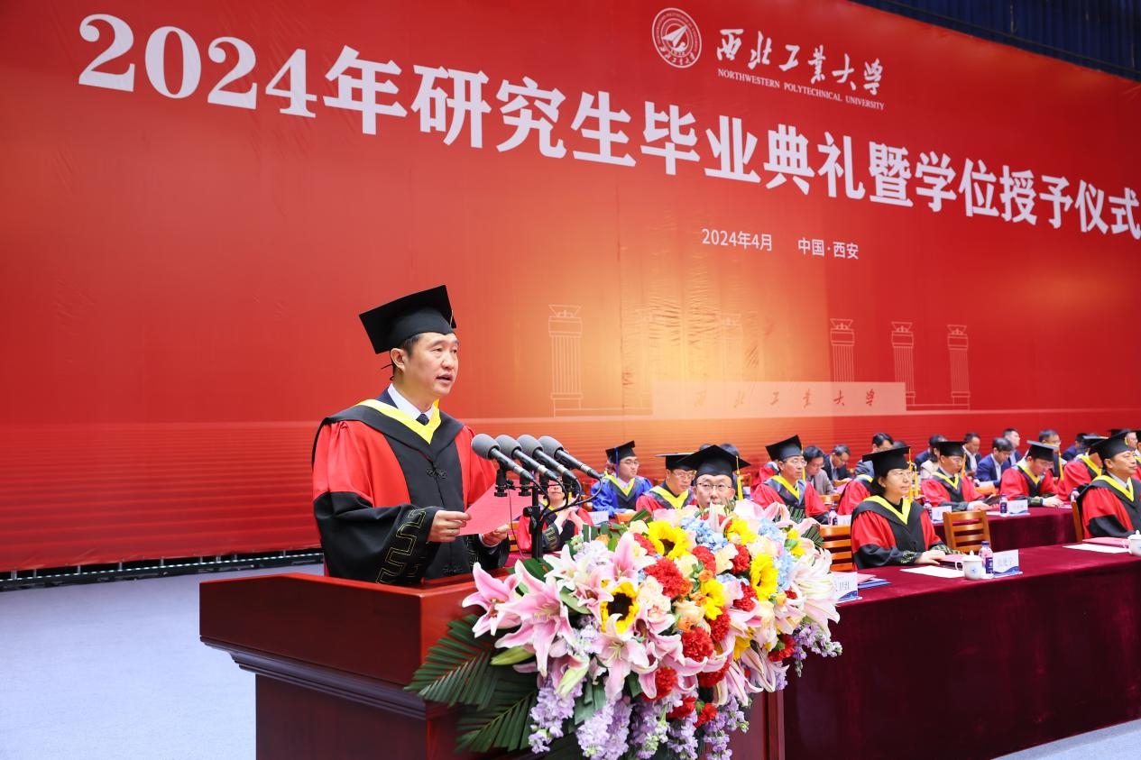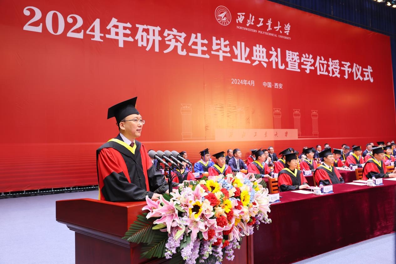研究生导师代表、计算机学院尚学群说,相信西工大赋予了大家自我选择的底气和“为国铸剑”的家国情怀。希望大家无论身处何处,都能够不负韶华,保持激情与纯粹,不随波逐流,不断自我突破,保持努力奔跑;都能够怀揣炽热的爱国情怀和强烈的使命感,用自己的智慧和汗水,用心雕琢每一把“剑”。她还叮嘱大家要管理好自己的健康,“野蛮自己的体魄”,以充沛的精力,为国家的繁荣富强而努力奋斗。