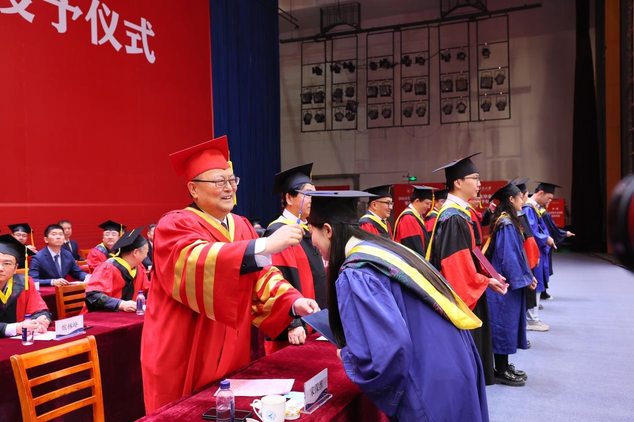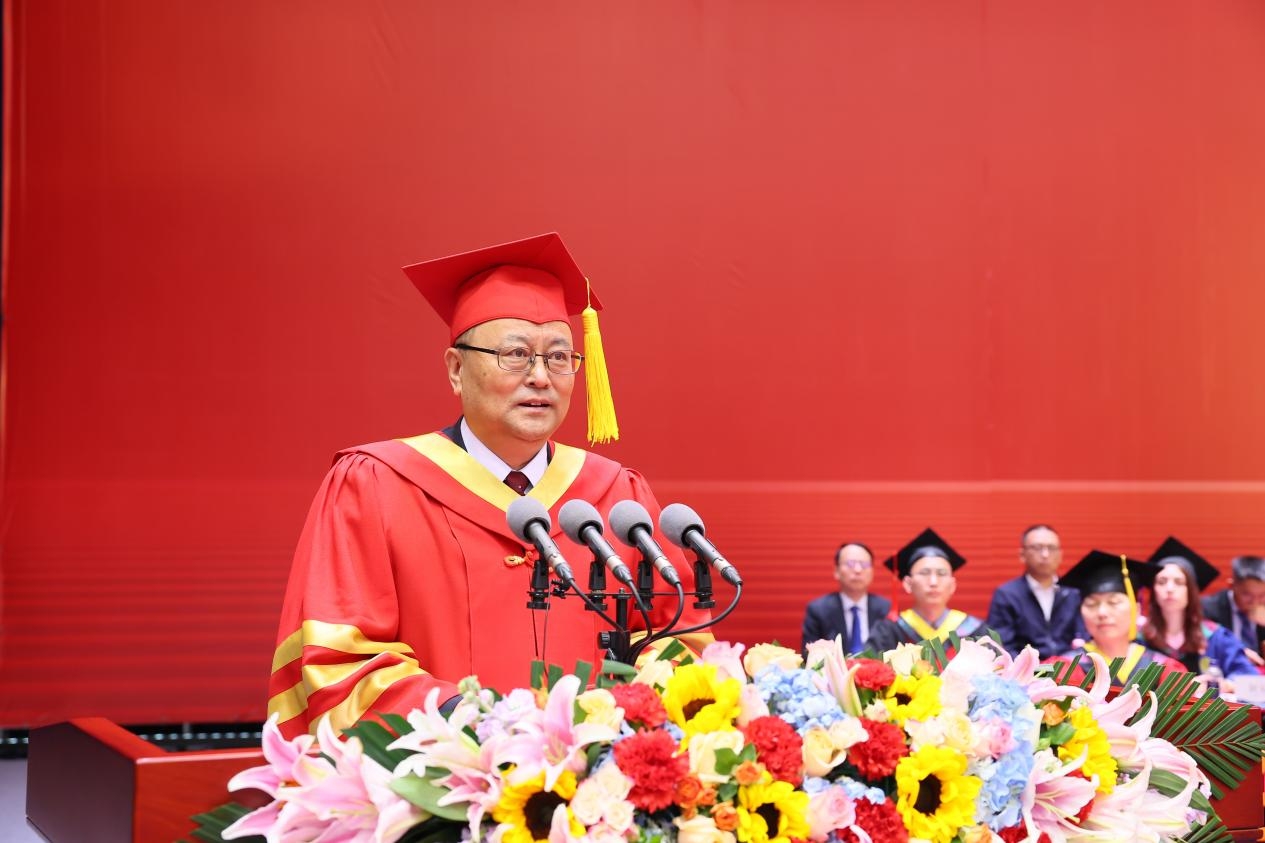 宋保维代表全校师生员工、代表李言荣书记,向同学们表示诚挚的祝贺!向辛勤付出的老师和家人们致以衷心的感谢!他说,几年前同学们满怀赤诚,从五湖四海汇聚于此,在校学习期间体验过研究取得突破时的喜悦、战胜过试验失败时的沮丧,不断在科研活动中锤炼本领、增长才干,取得了沉甸甸的收获,创造了一个个属于你们的高光时刻。作为师长,我由衷地为你们感到骄傲和自豪!当下,国家迫切需要一流的人才队伍,你们是新时代的中国青年,更加自信自强、富于思辨精神,是推进高水平科技自立自强的新鲜血液,也必将是推进中国式现代化的主力军。