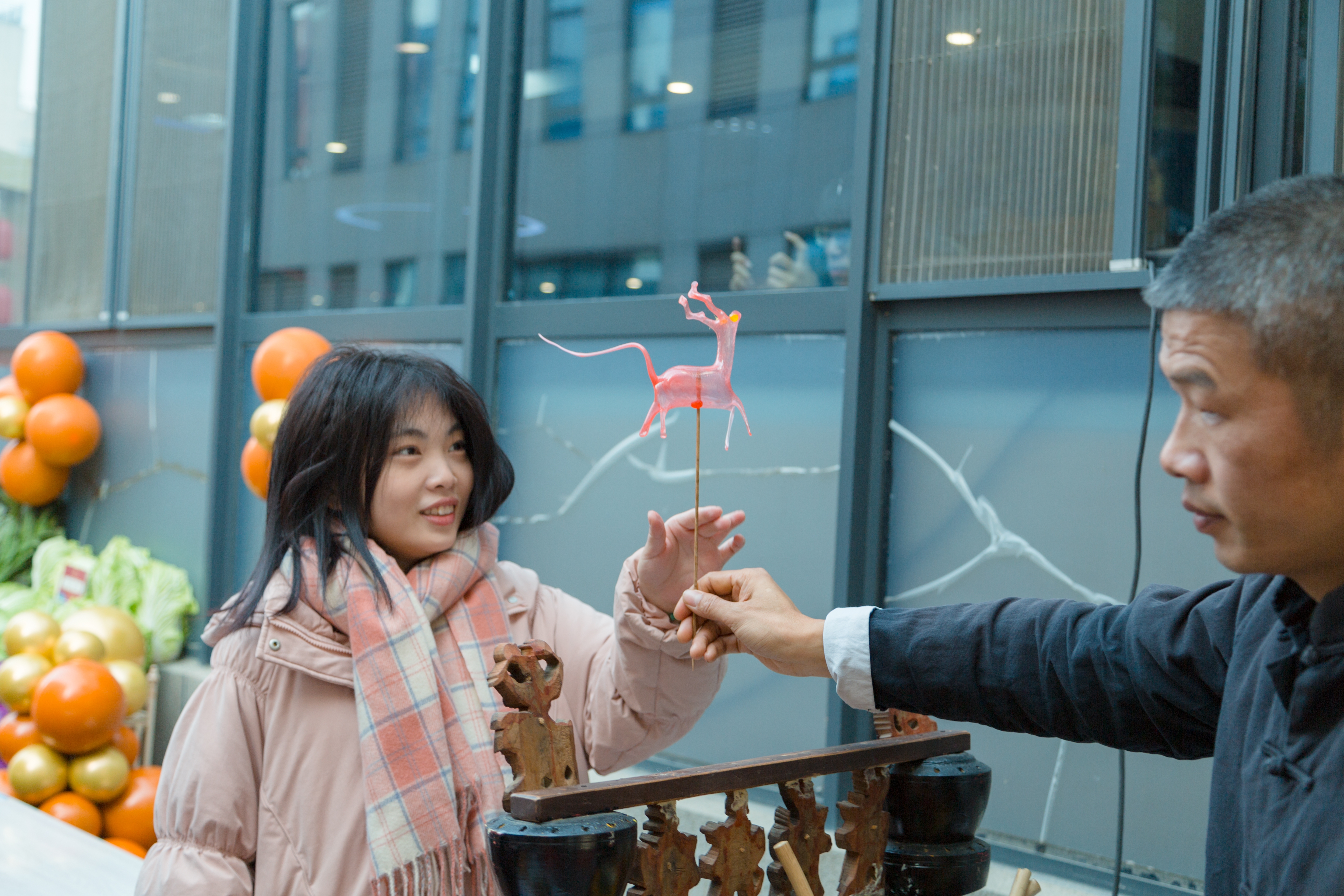 为丰富劳动教育实践内涵,创新劳动实践育人模式,此次丰收节特别设计了农作物成果展示、特色小吃品尝、有奖问答、传统技艺体验等一系列项目,营造了劳动教育的浓厚氛围。学校邀请传统技艺传承人,将久违的糖画、吹糖人、镜糕等技艺表演搬到丰收节活动现场,让同学们现场感受传统技艺的精妙。