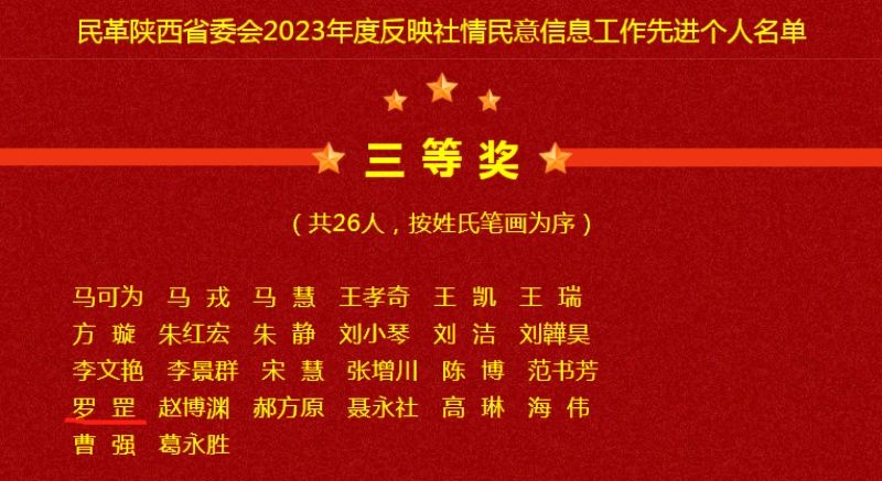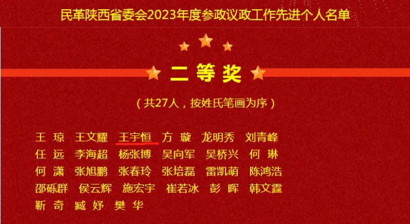 1月5日至6日,民革陕西省第十三届委员会第三次全体会议在西安召开。会上表彰了2023年度参政议政工作和反映社情民意信息工作先进集体和个人,民革西工大总支荣获民革陕西省委会2023年度参政议政工作工作先进集体三等奖,主委王宇恒荣获参政议政工作先进个人二等奖,委员罗罡荣获反映社情民意信息工作先进个人三等奖。