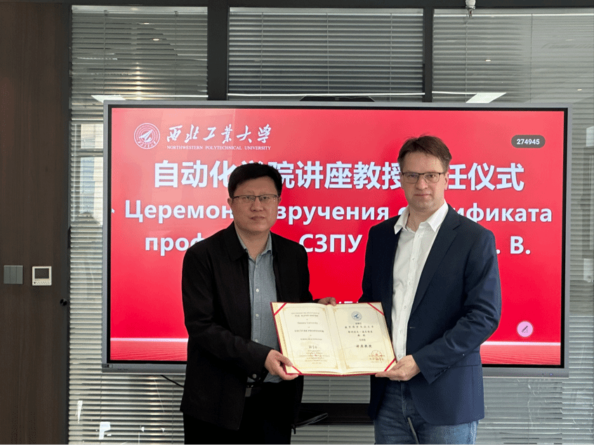 随后,韩军伟院长为叶列涅夫教授颁发了讲座教授聘书。叶列涅夫表示深感荣幸,他首次来到中国,有幸在各位老师的帮助下迅速开展工作,期待未来能够和自动化学院进行更深层次的合作。